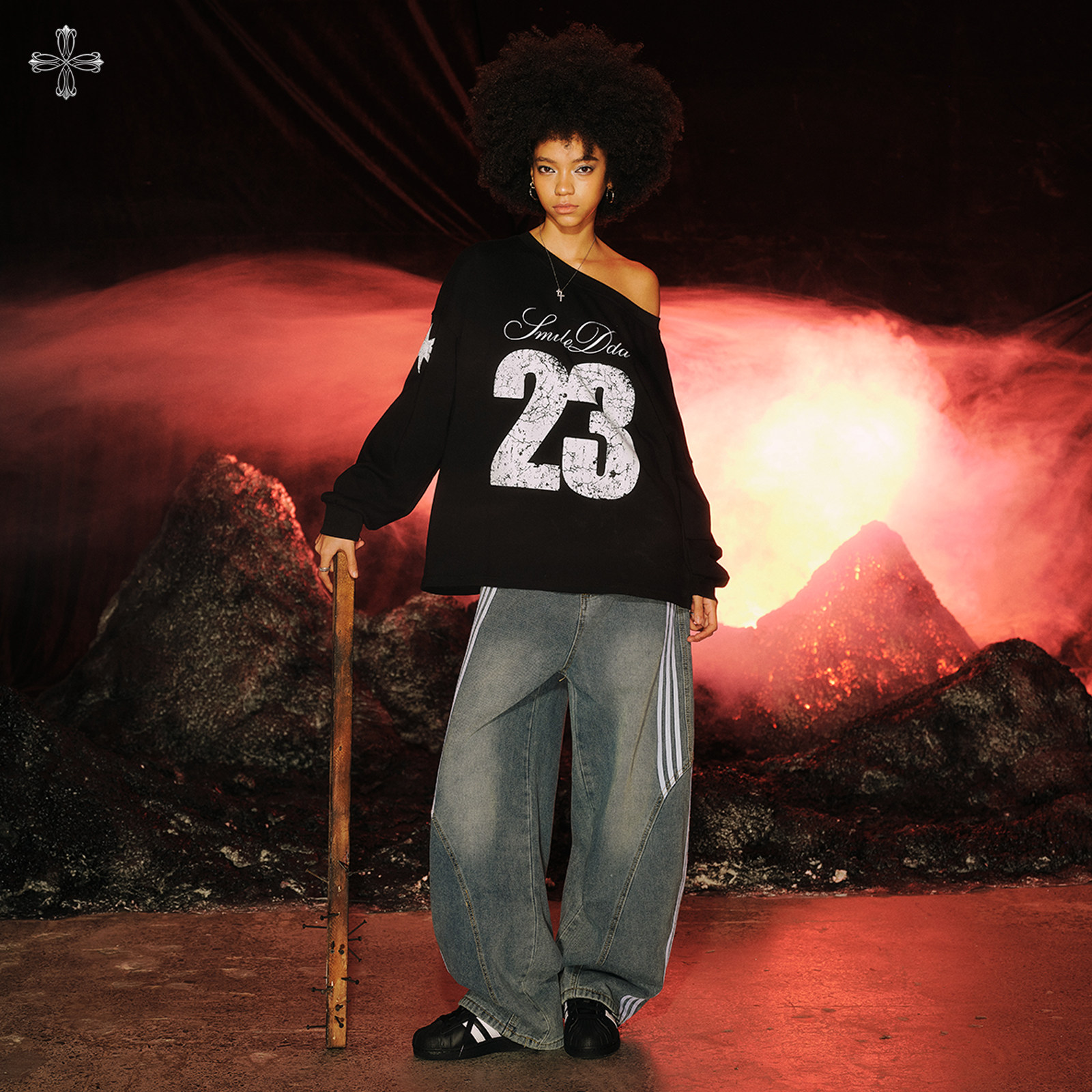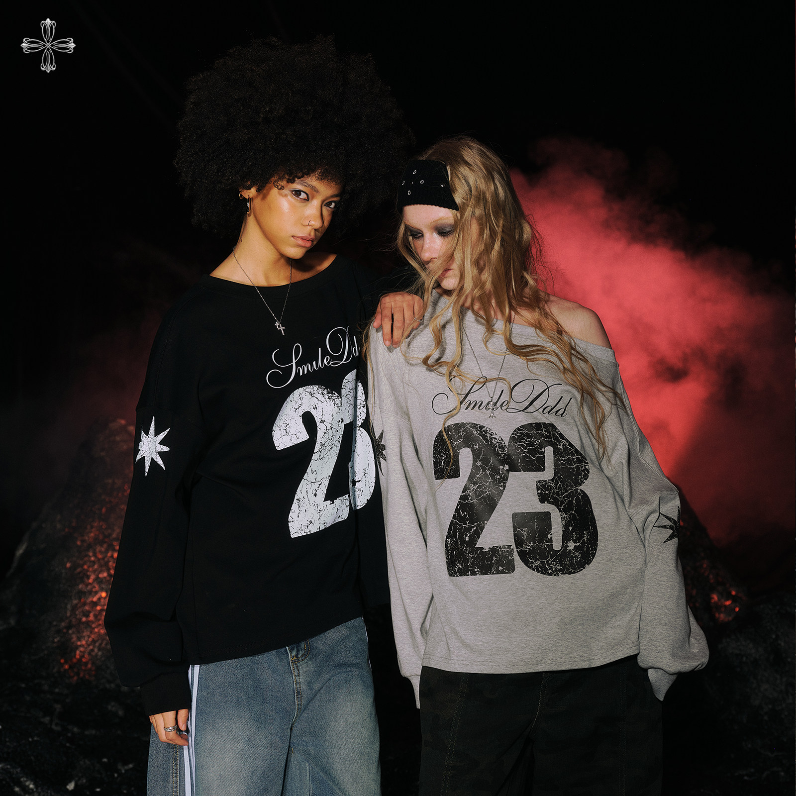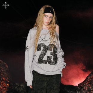 美式 23斜肩卫衣宽松落肩长袖 街头辣妹女跳舞上衣 月缺 SMILEDDD