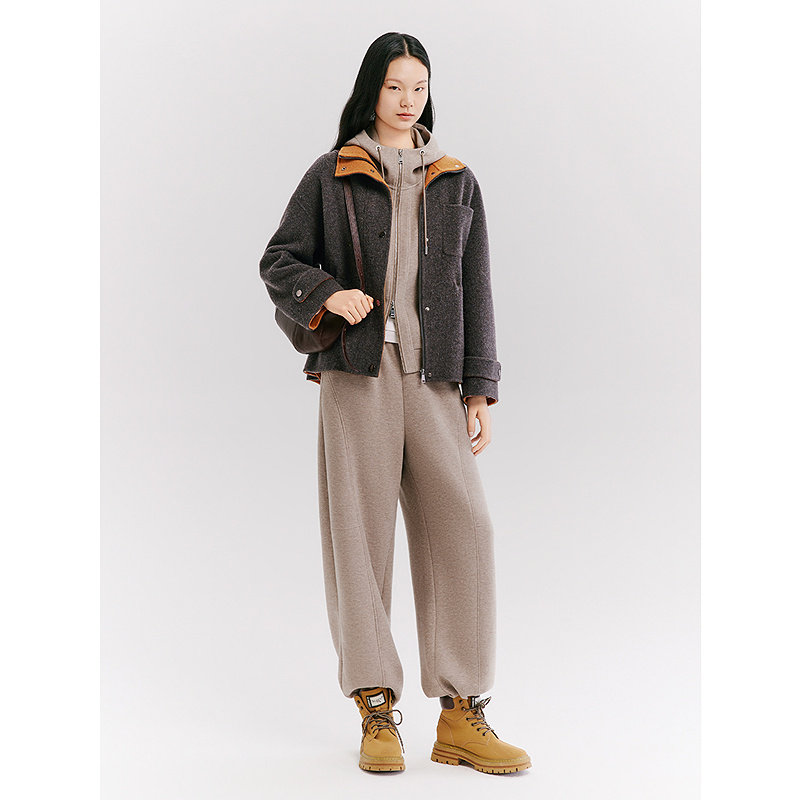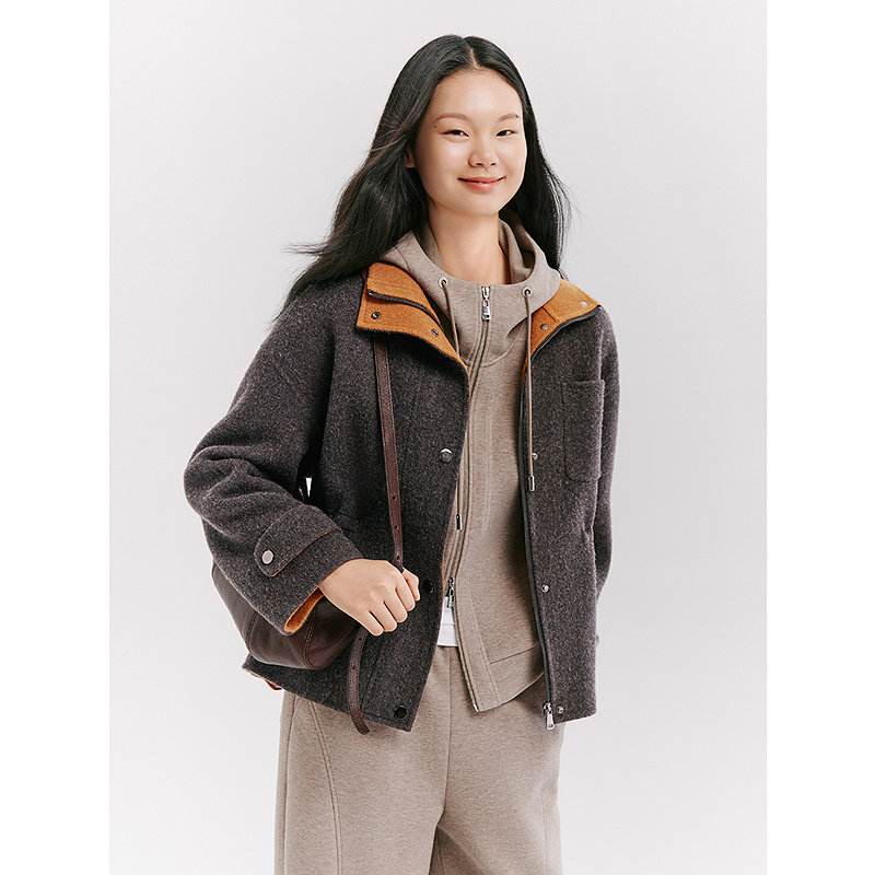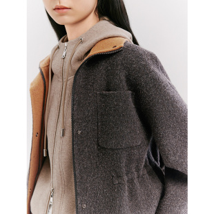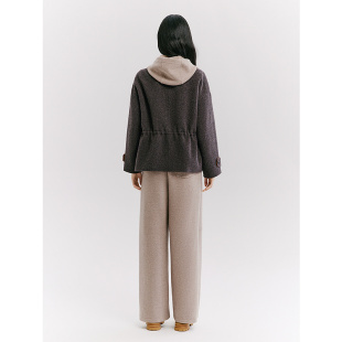 十二篮26春新款 格雷系气质通勤毛呢外套女百搭灰色 绵羊毛大衣短款
