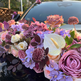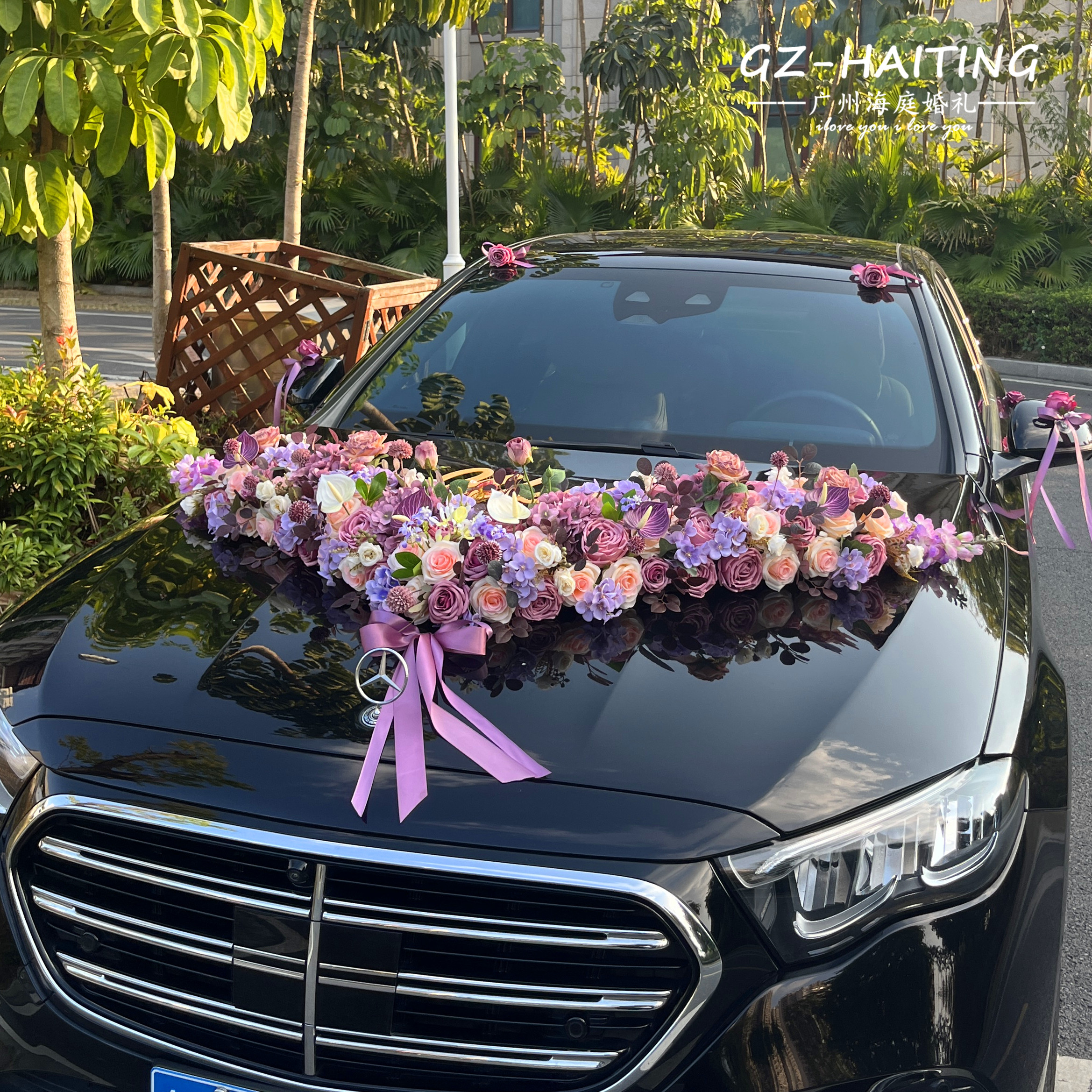 婚礼结婚车队拉花套装 2026新莫兰迪紫色大V主婚车装 饰车头花全套