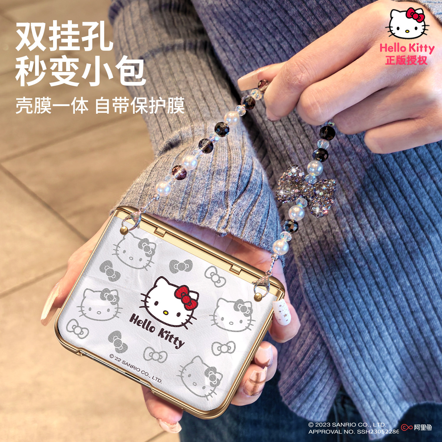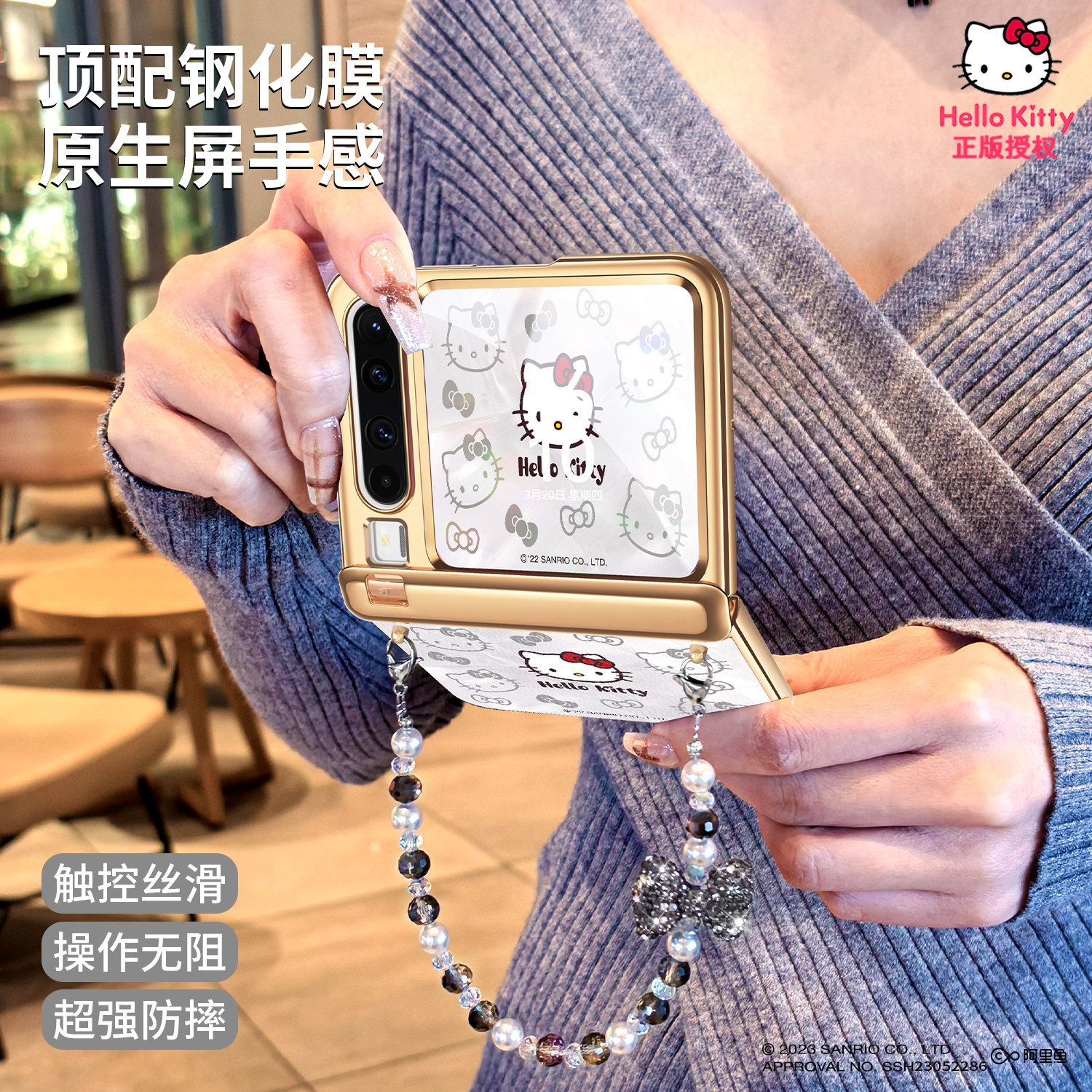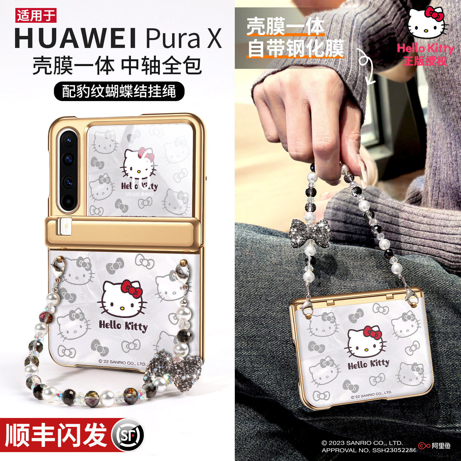 x外壳HelloKitty超薄中轴全包防摔外壳带挂绳 壳膜一体高端素皮pura典藏版 凯蒂猫正版 适用华为purax手机壳新款