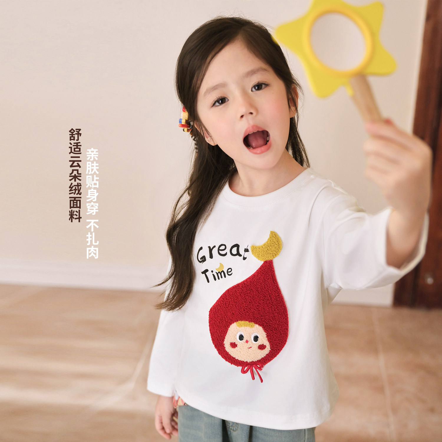新款 t恤女2026春季 女童百搭柔软卡通上衣 宝宝图案长袖 小O宝童装