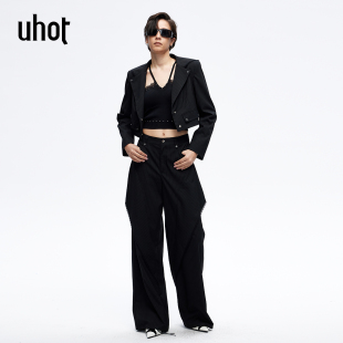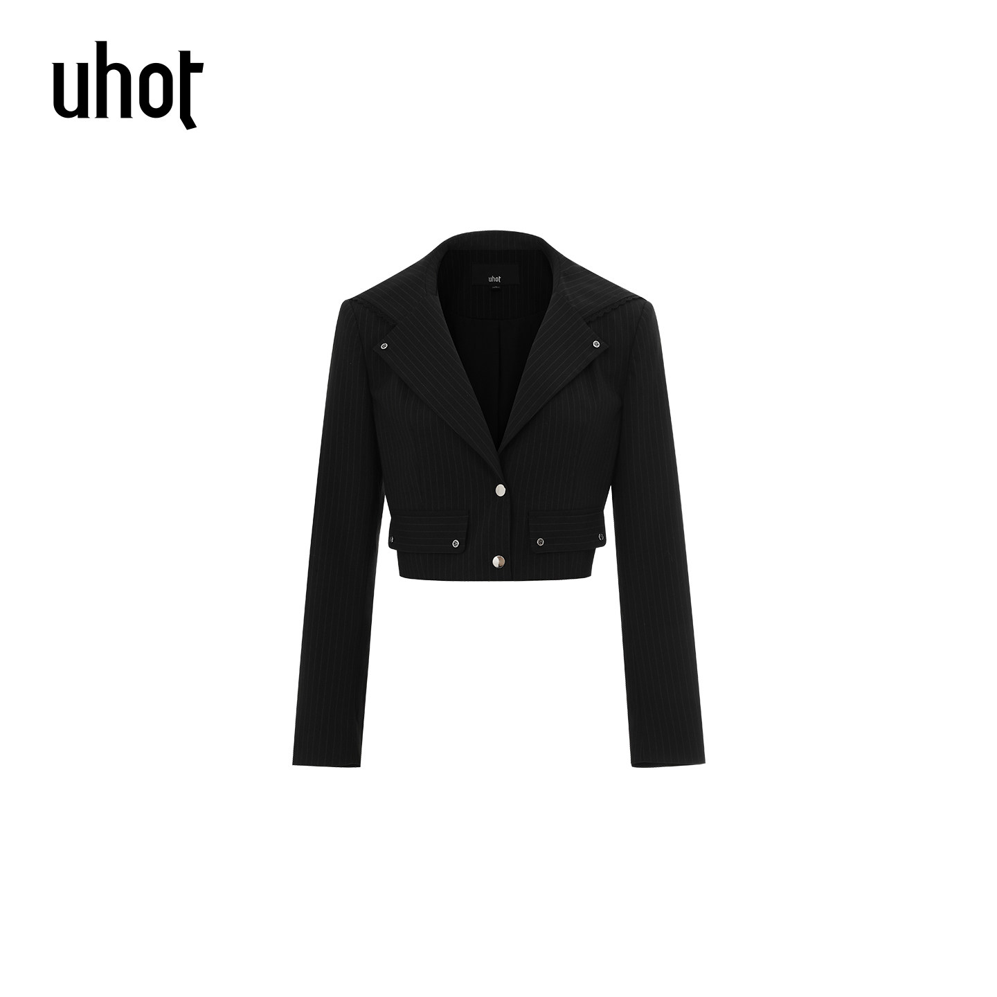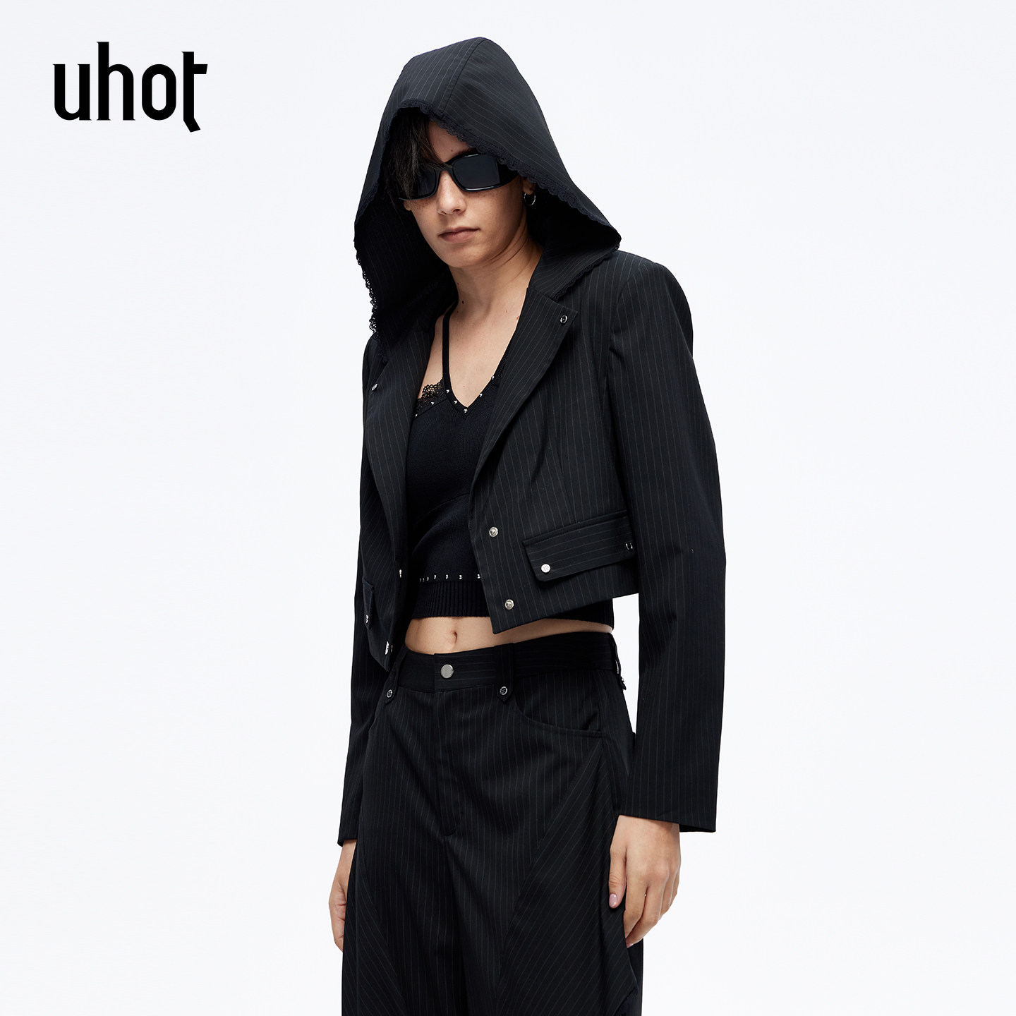 超酷新次元 uhot 外套新款 连帽西装 UWLS1W435 诱货26春黑色撞钉短款