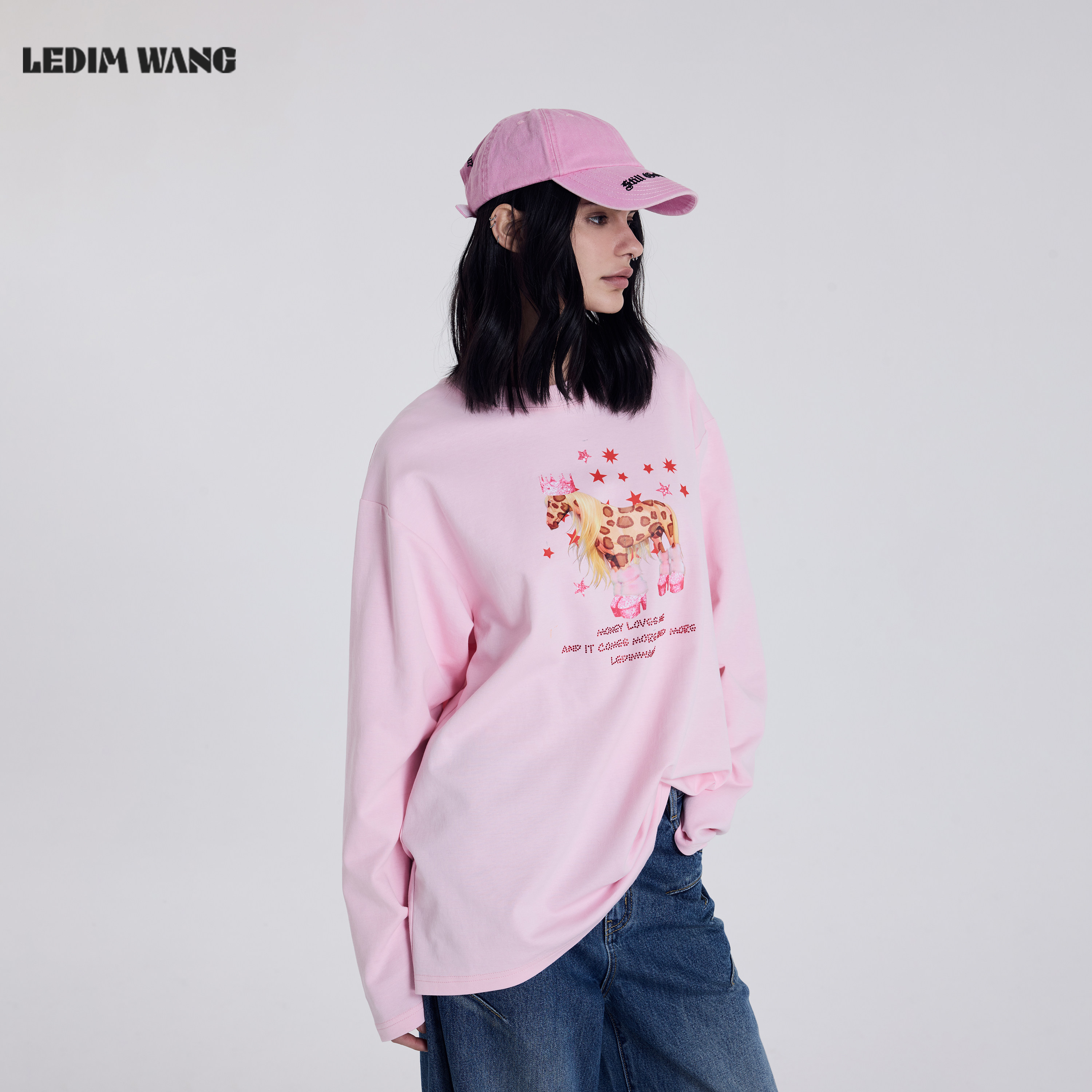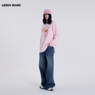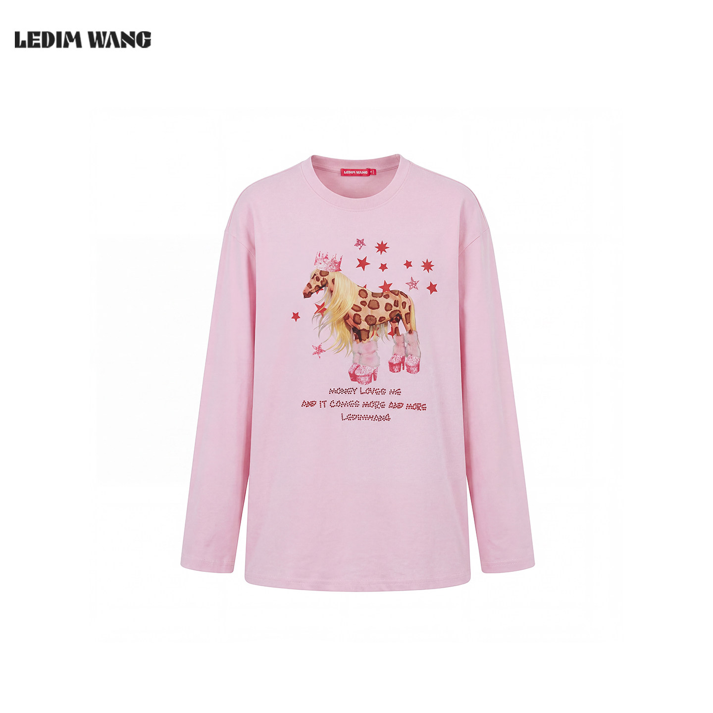 粉色新年战袍长袖 新款 宽松上衣 WANG马年豹纹T恤女2026春季 LEDIM