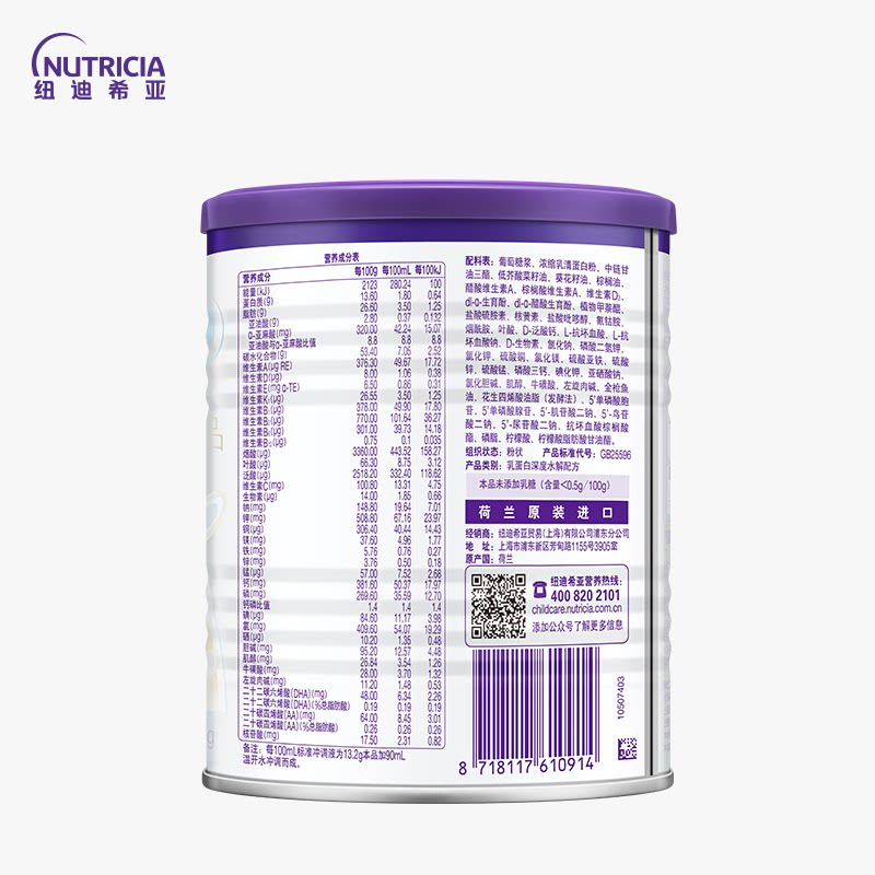 纽太特 特殊医学用途婴儿乳清蛋白深度水解配方过敏特配粉450g
