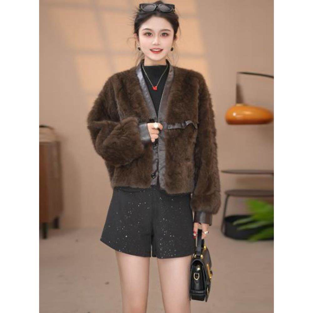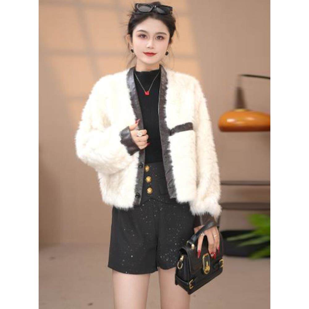 洋气显瘦皮毛一体毛毛上衣潮 新款 时尚 水貂绒皮草外套女2025冬季