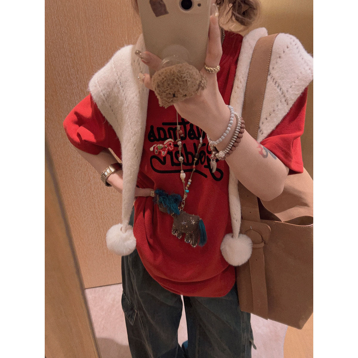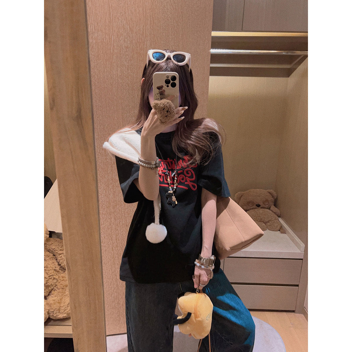 T恤~ Yukiss 软糯宽松短袖 新年小马刺绣 马上暴富