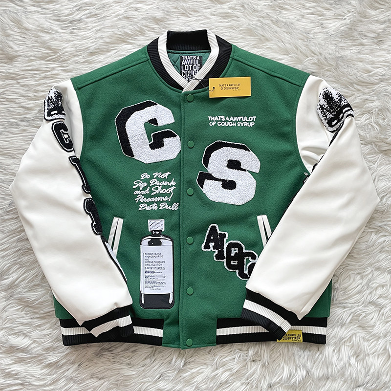 Awful Lot That Syrup Cough 重工全刺绣棒球毛呢夹克外套