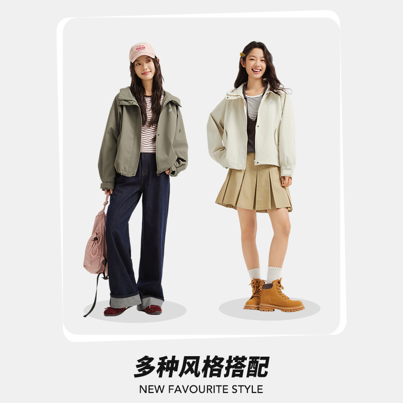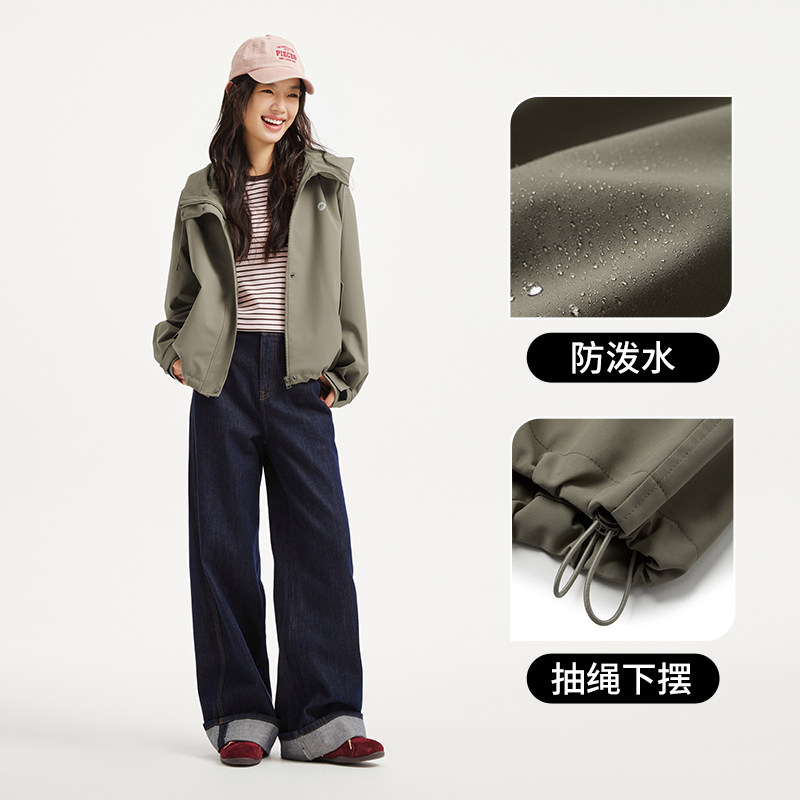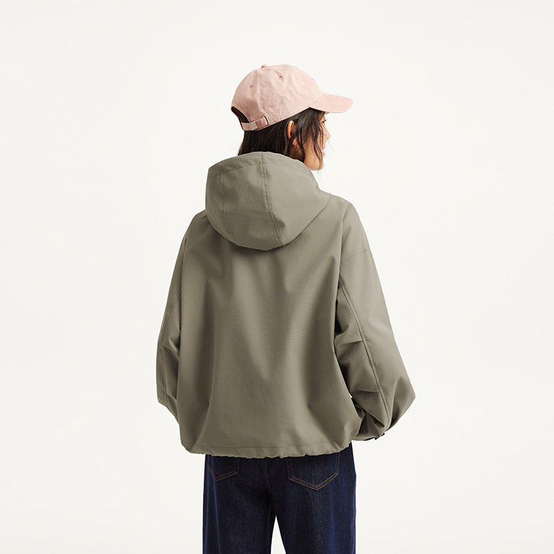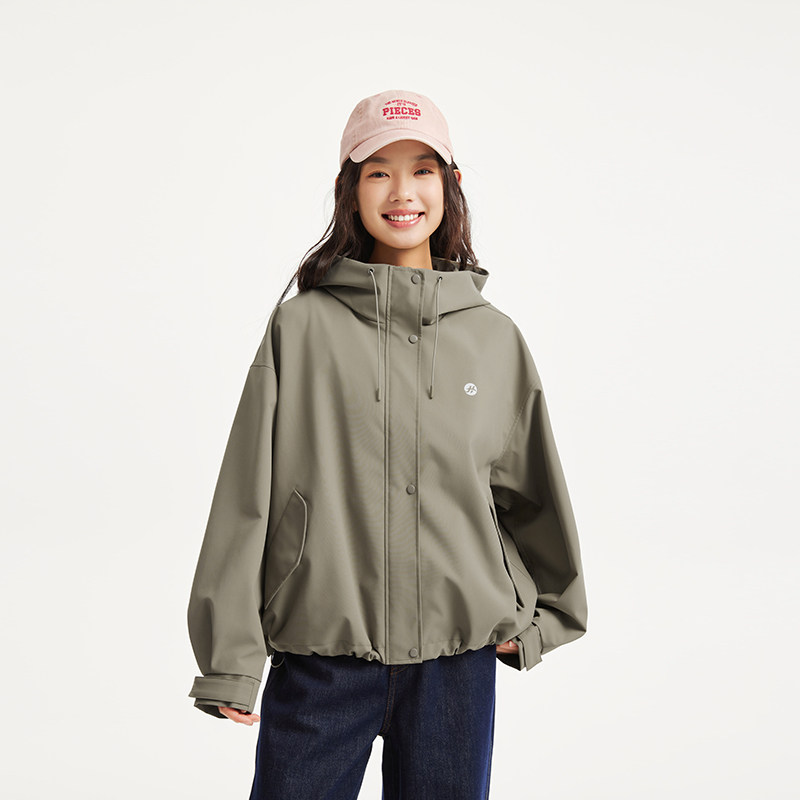热风女士夹克外套上衣2026年春季 户外运动风连帽三防面料外套 新款