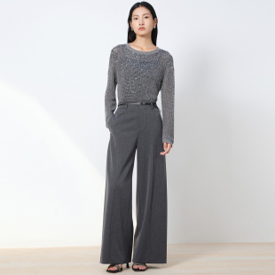 新款 子女2026春季 雏菊刺绣灰色垂感休闲裤 ELSEWHERE珂思商场同款