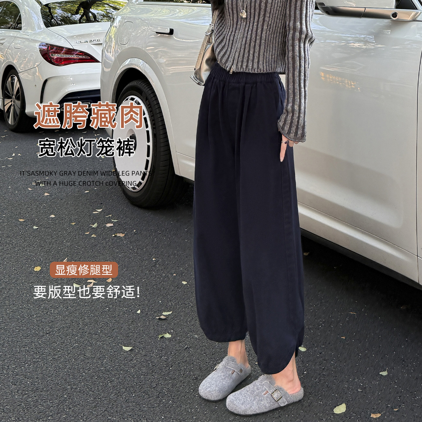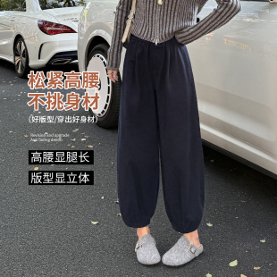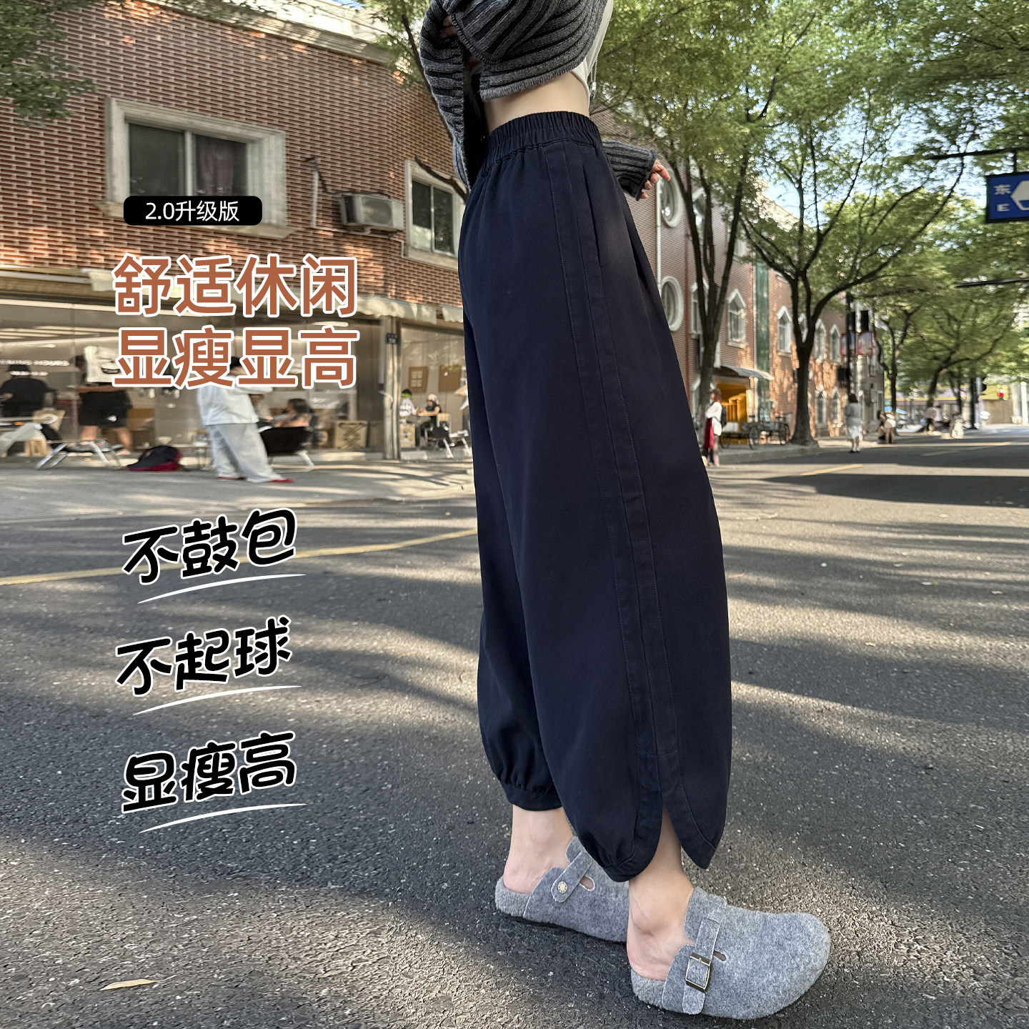 松紧高腰宽松小个子九分休闲开叉花苞灯笼裤 哈伦裤 女2026春夏新款
