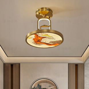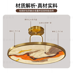 新中式 吸顶灯全铜卧室灯珐琅彩大气古典风主灯餐厅书房茶室护眼灯