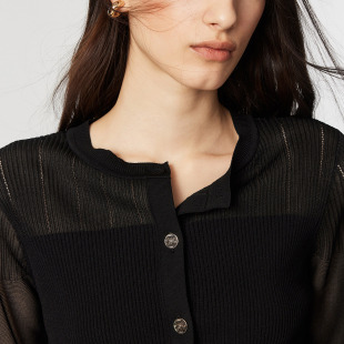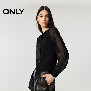 新款 针织衫 短款 长袖 上衣女 收腰拼接微透设计圆领开衫 ONLY2026春季