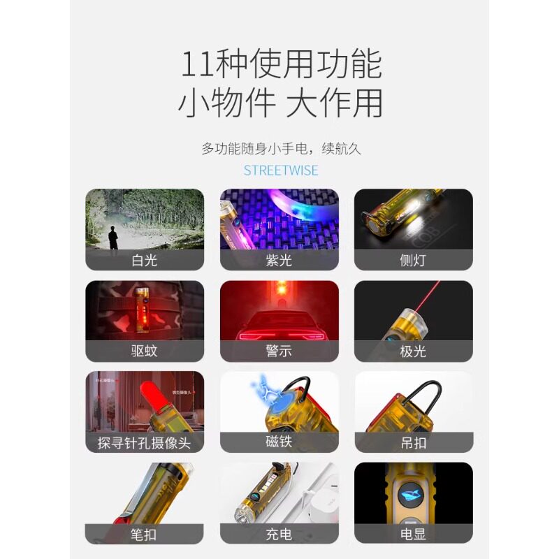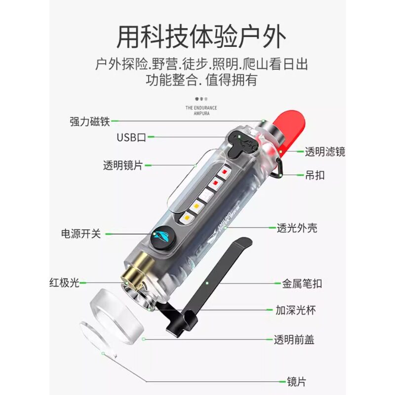 微笑鲨6060强光便携超亮手电筒充电小型迷你钥匙扣灯多功能激光笔