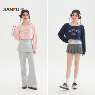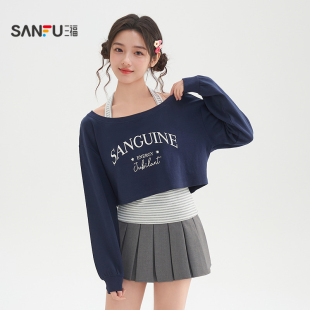 上衣两件套女装 三福卫衣2026新款 罩衫 挂脖条纹吊带短款 517354 春季
