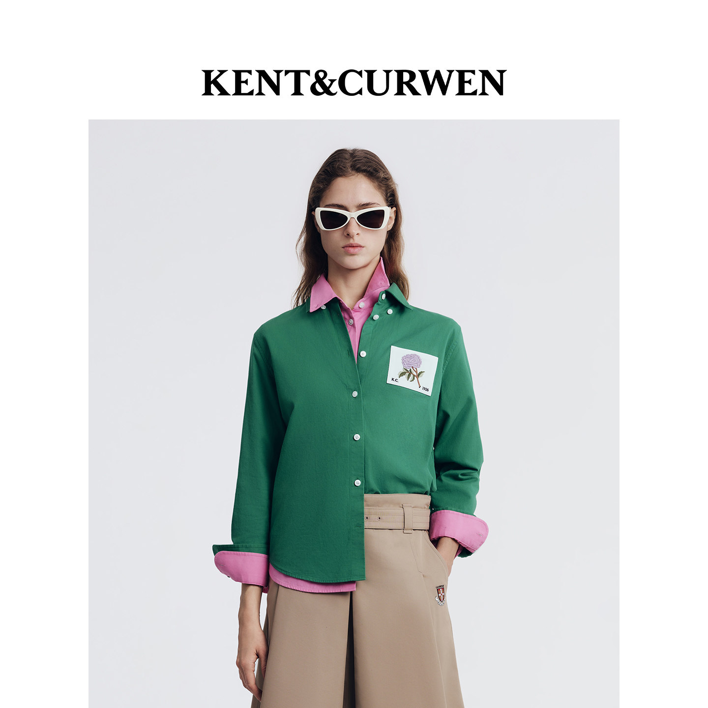 女士玫瑰刺绣纯棉休闲衬衫 KENT&CURWEN 肯迪文2026春夏新品