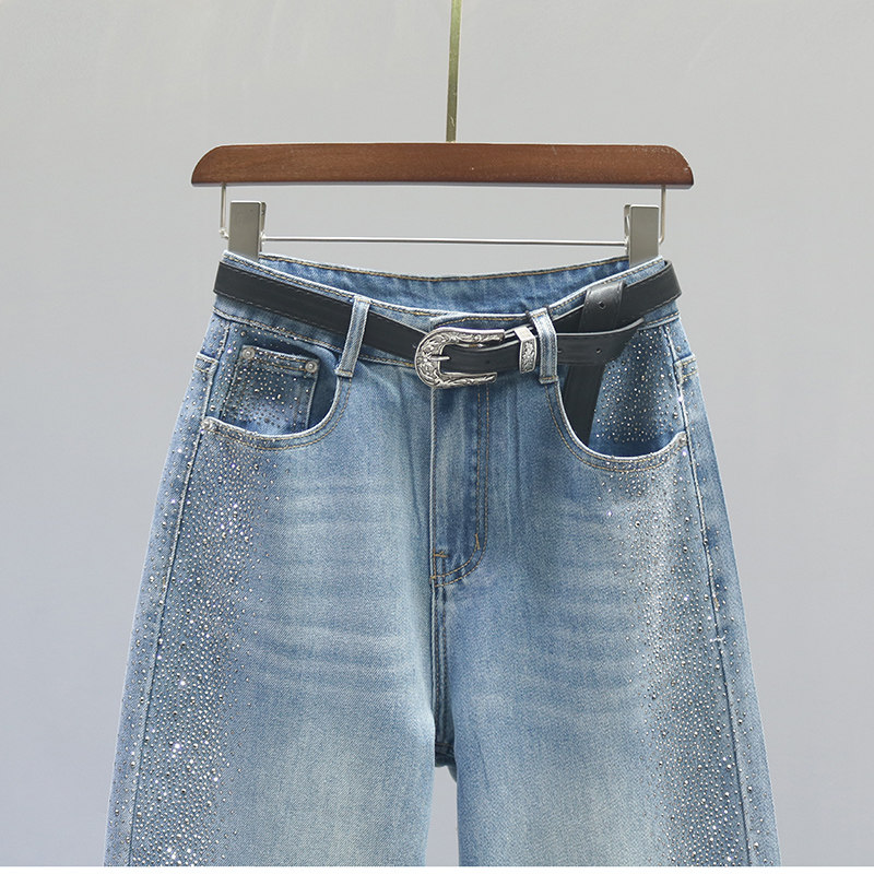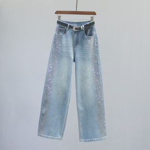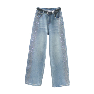 重工烫钻宽松休闲百搭阔腿裤 新款 子 女2026春季 复古高腰直筒牛仔裤