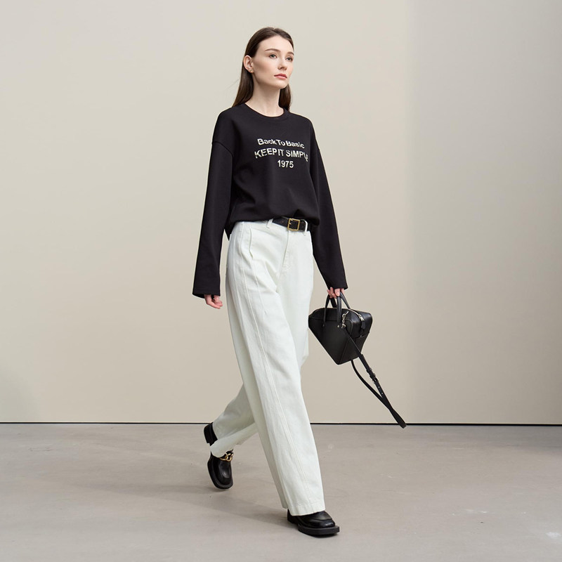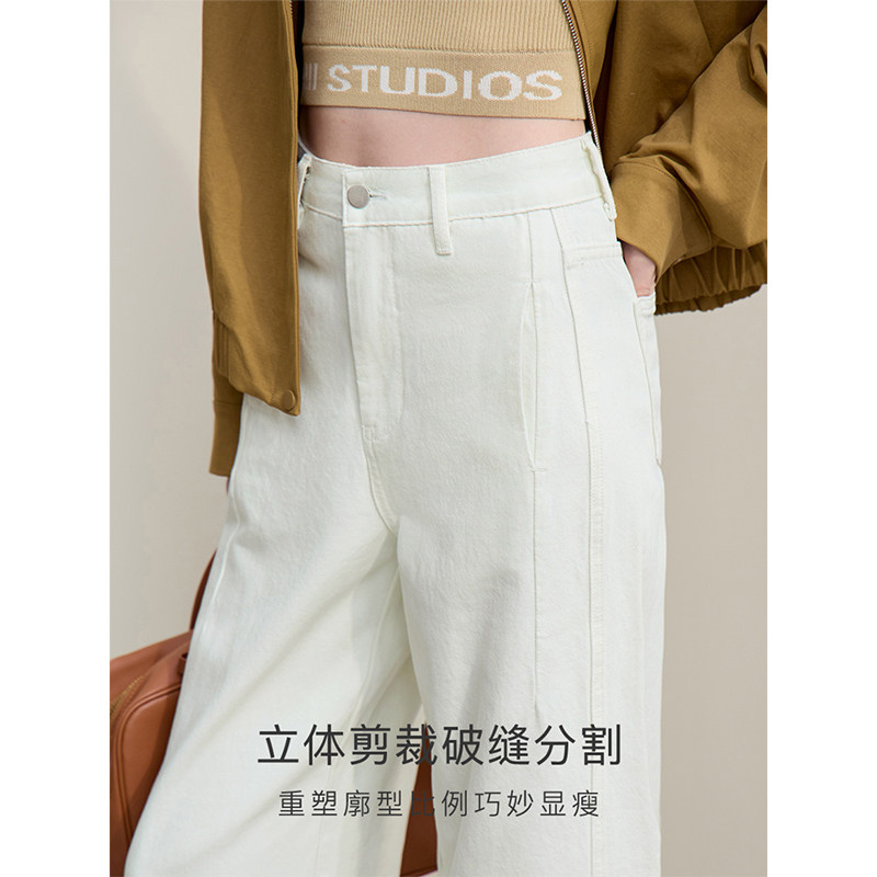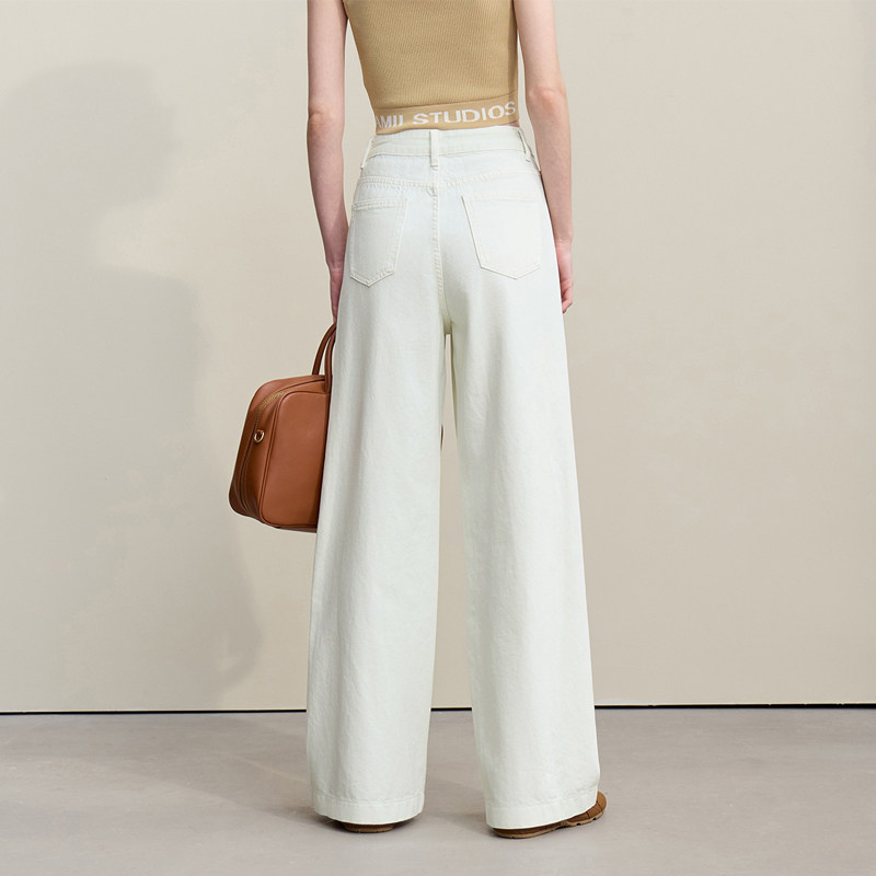 舒适棉质白色裤 女2026春新款 子 牛仔长裤 Amii休闲风百搭宽松阔腿裤