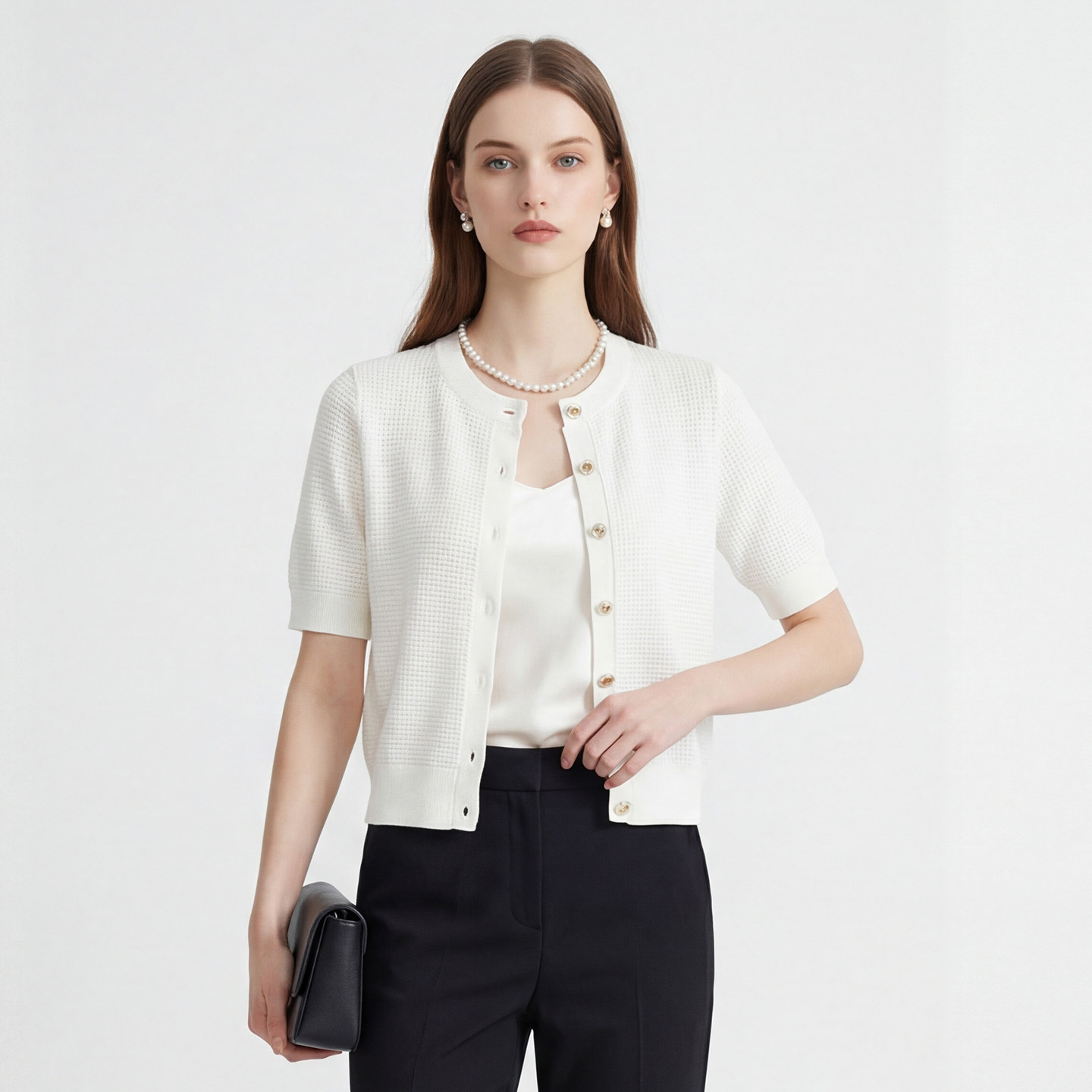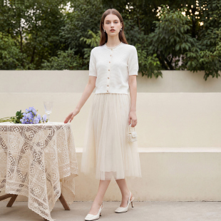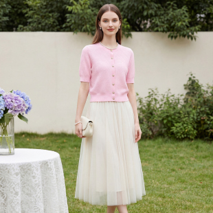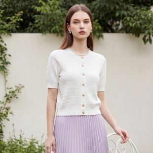 小衫 棉质混纺针织开衫 气质百搭 圆领单排扣短袖 马天奴2026春夏新款