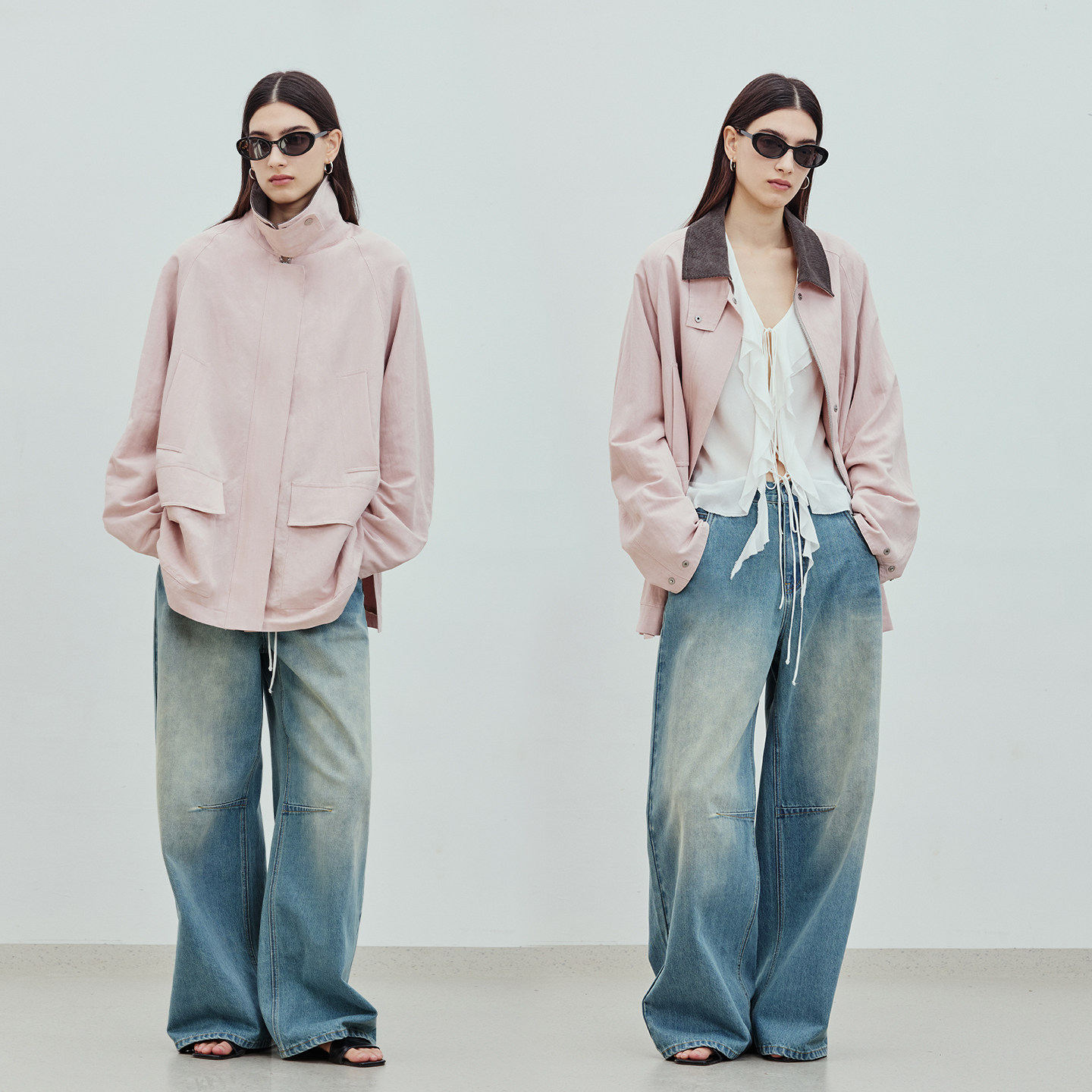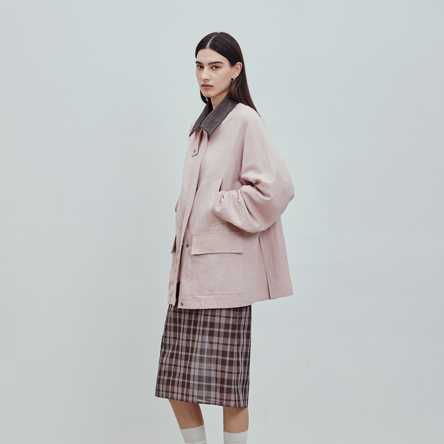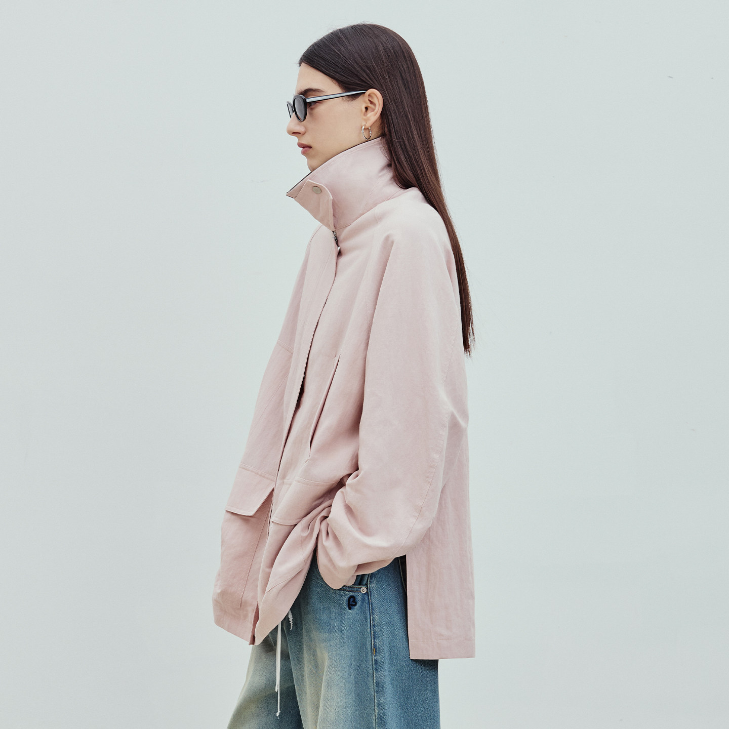 风衣猎装 亚麻混纺撞色立翻领工装 夹克女 新品 BLUEWEDIAN2026春季