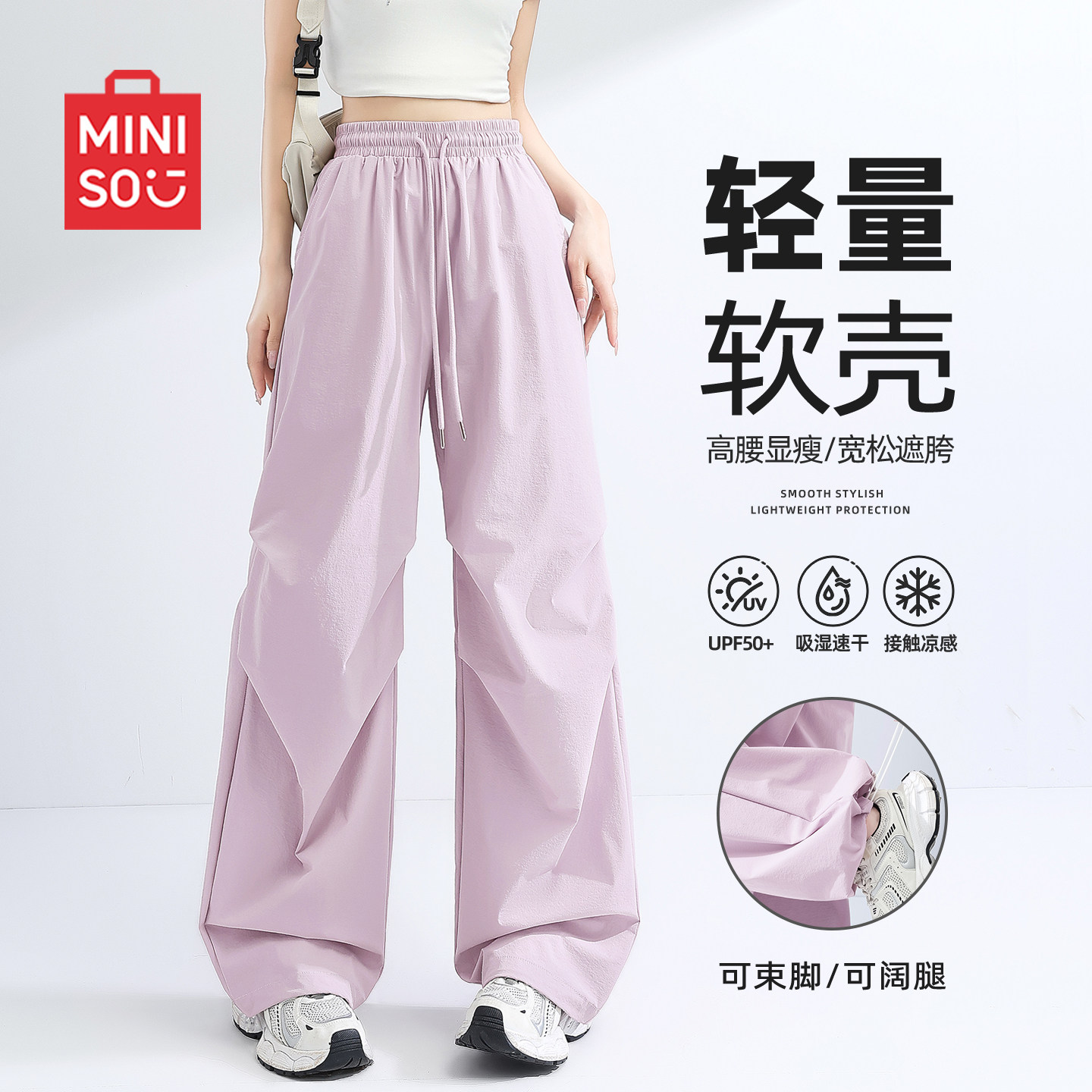 女2026新款 裤 春季 冲锋裤 MINISO 女士速干运动裤 名创优品蓝色工装