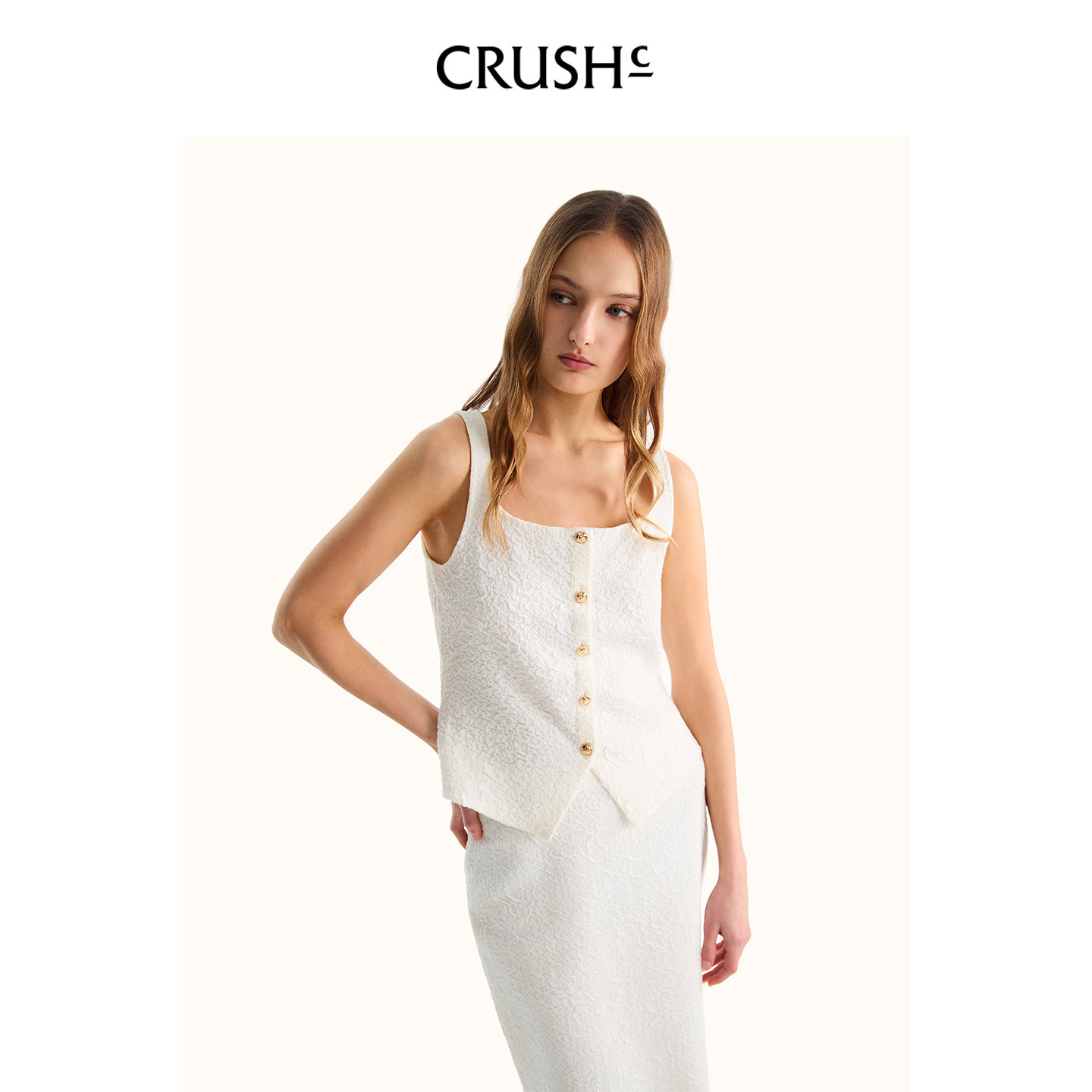 浮雕肌理方形领收腰减龄马甲女款 CRUSH Collection2026年春夏新款