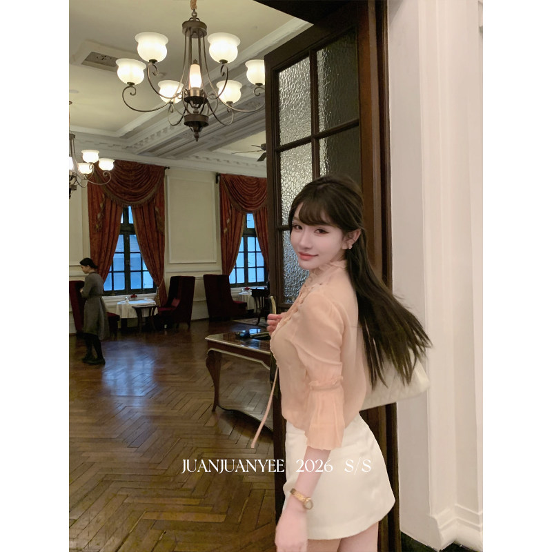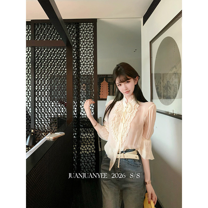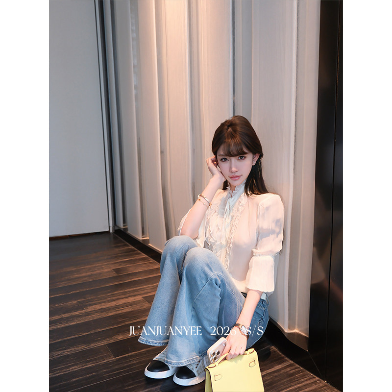 春夏衬衫 juanjuanyee 修身 100%人丝木耳边7分微喇袖 女 美神降临