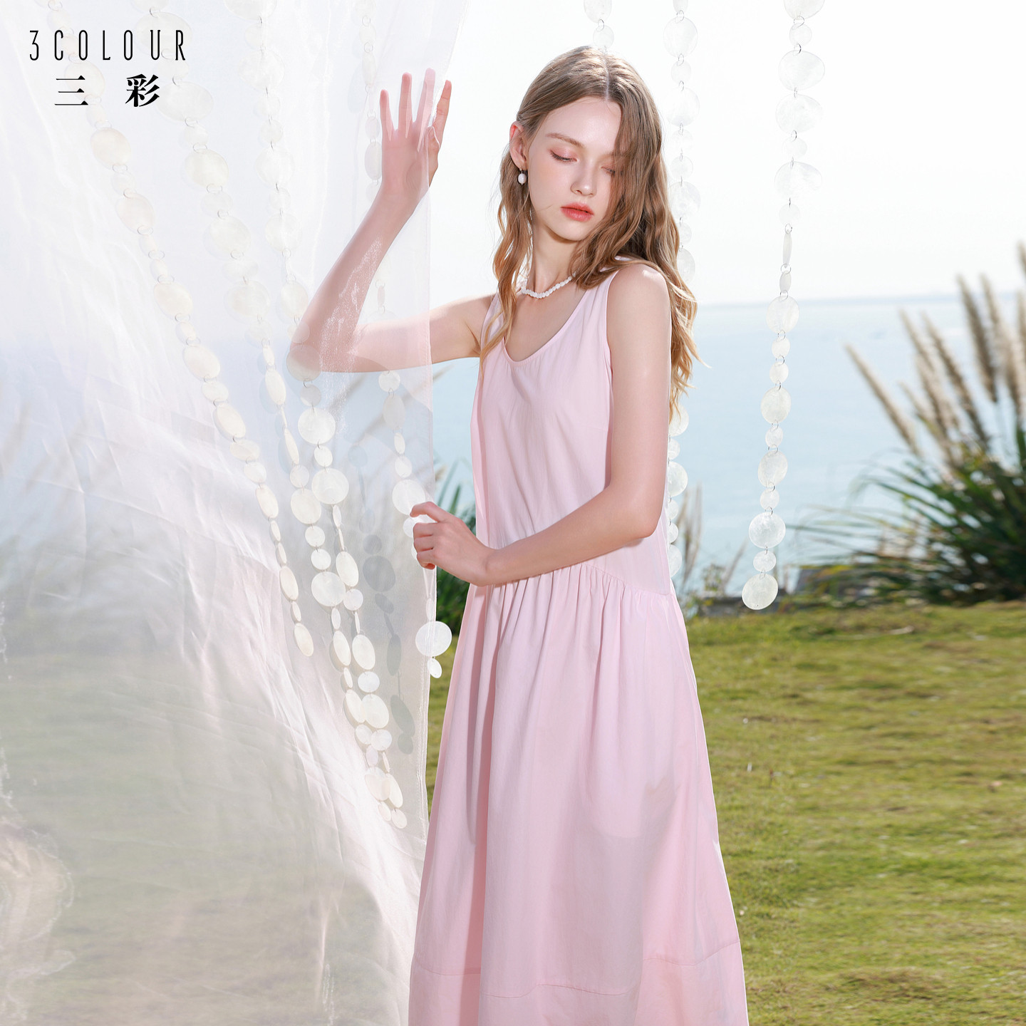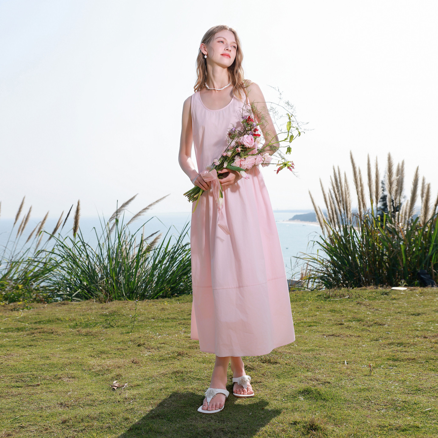 无袖 新款 三彩2026春季 连衣裙U领A字裙宽松长裙M 100棉