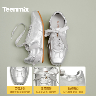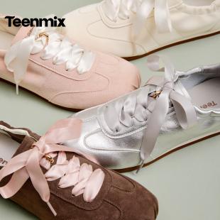 女软底休闲运动鞋 天美意复古绸缎芭蕾阿甘德训鞋 蜜蜂心愿社