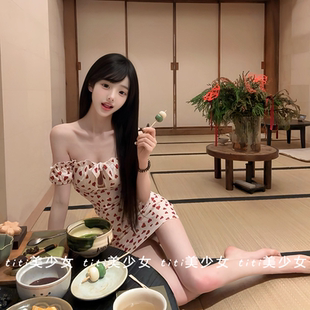 包臀裙 桃心印花连衣裙设计感绑带甜美纯欲修身 TiTi美少女