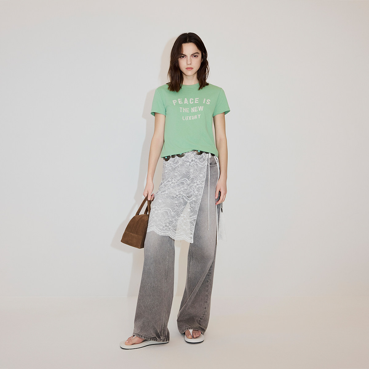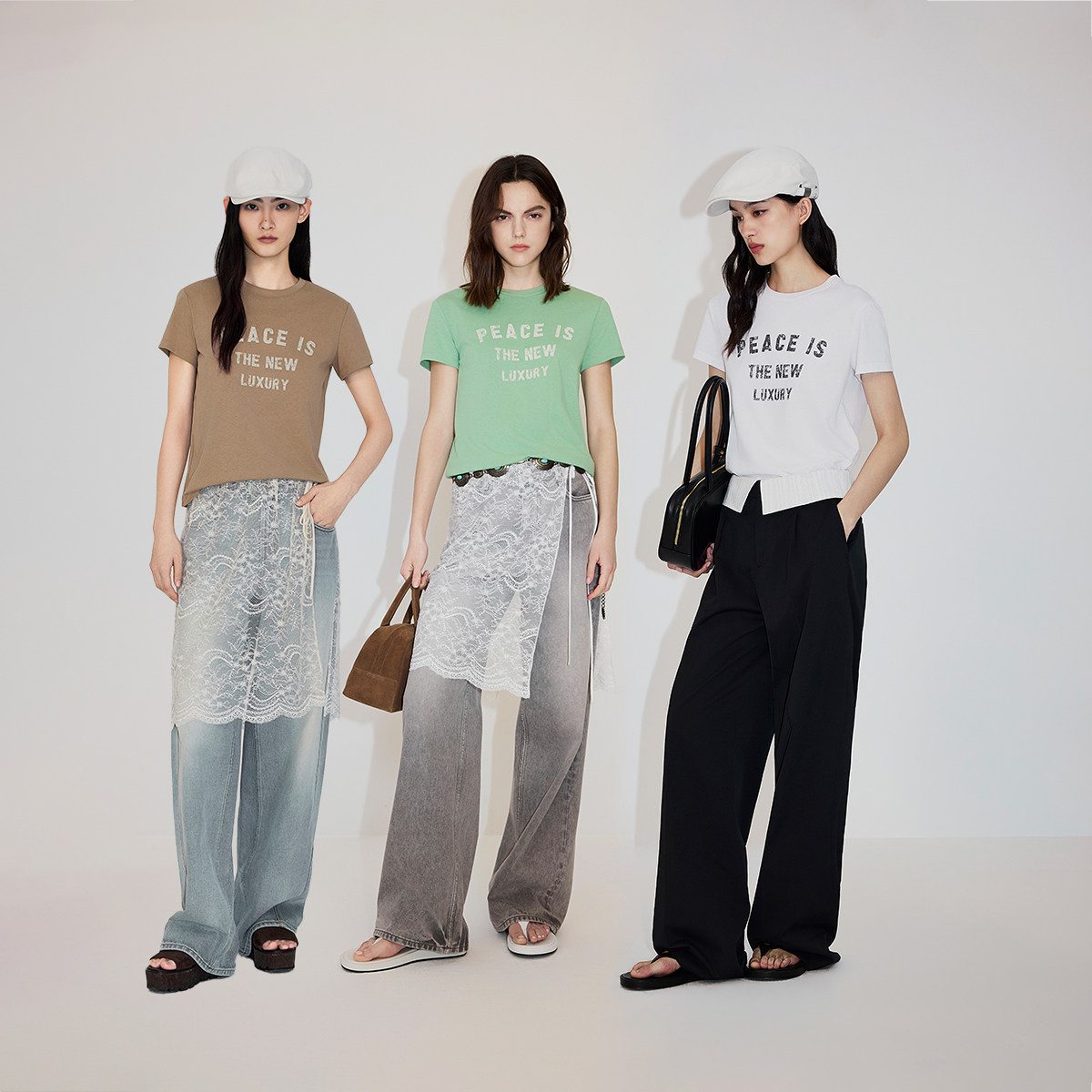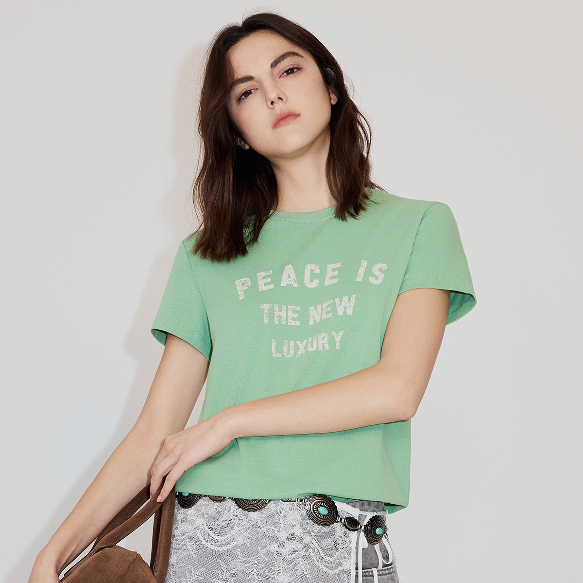 休闲短袖 棉麻字母印花t恤女2026夏季 OCHIRLY欧时力 上衣 新品