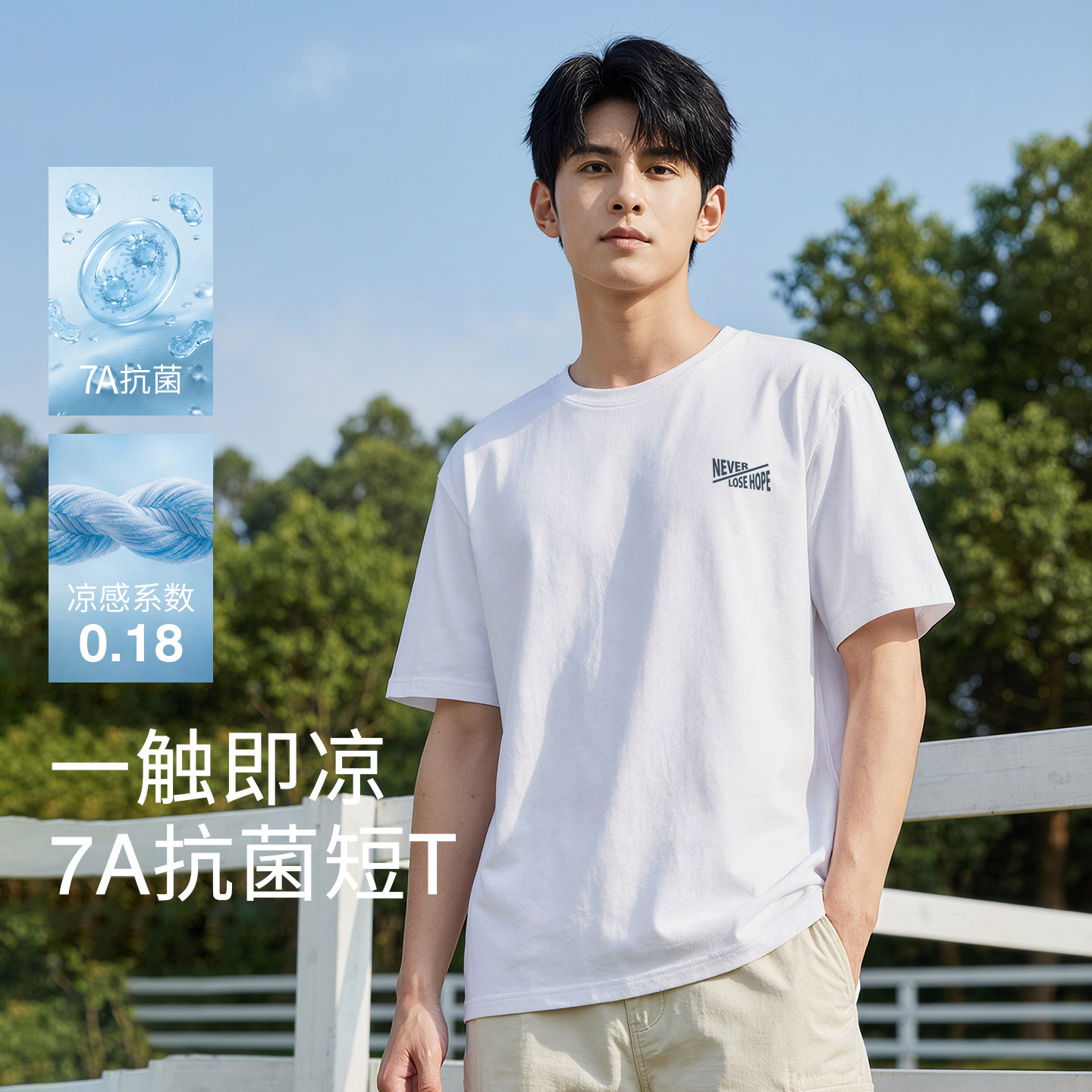 白色t恤男户外休闲男士 班尼路抗菌运动短袖 夏季 2026新款 上衣A 男款