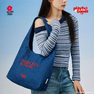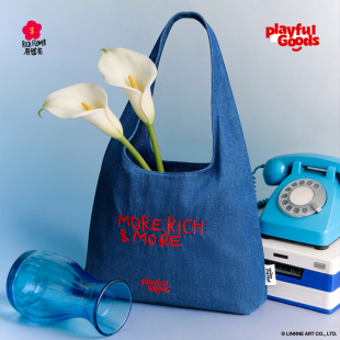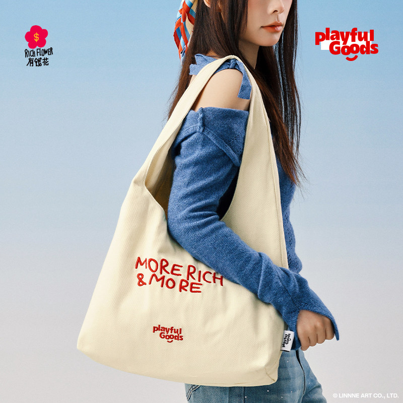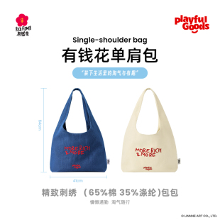 有钱花正版 联名大容量刺绣帆布包潮日系百搭单肩包通勤特包