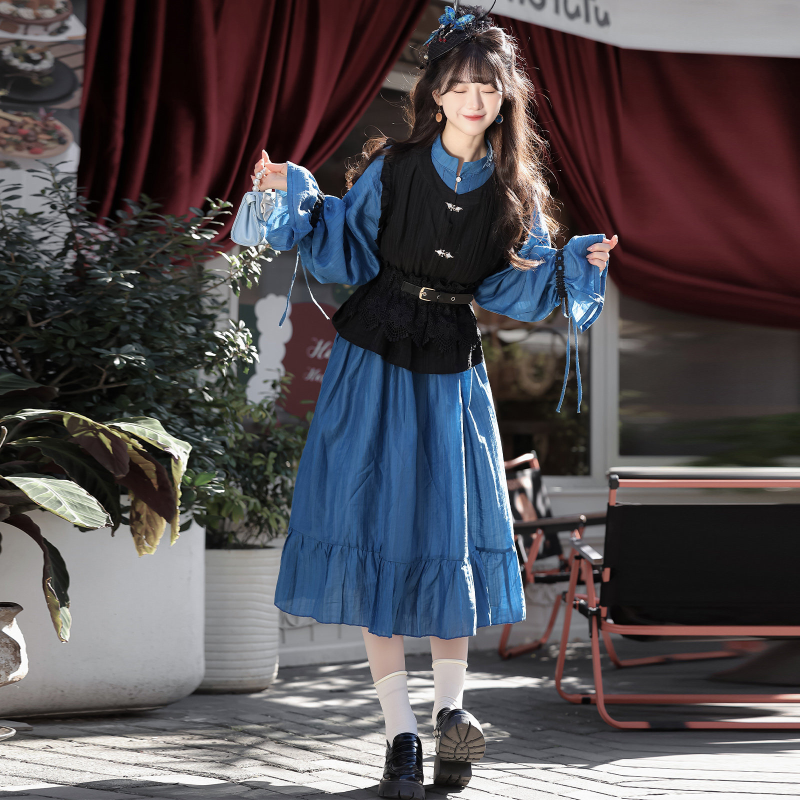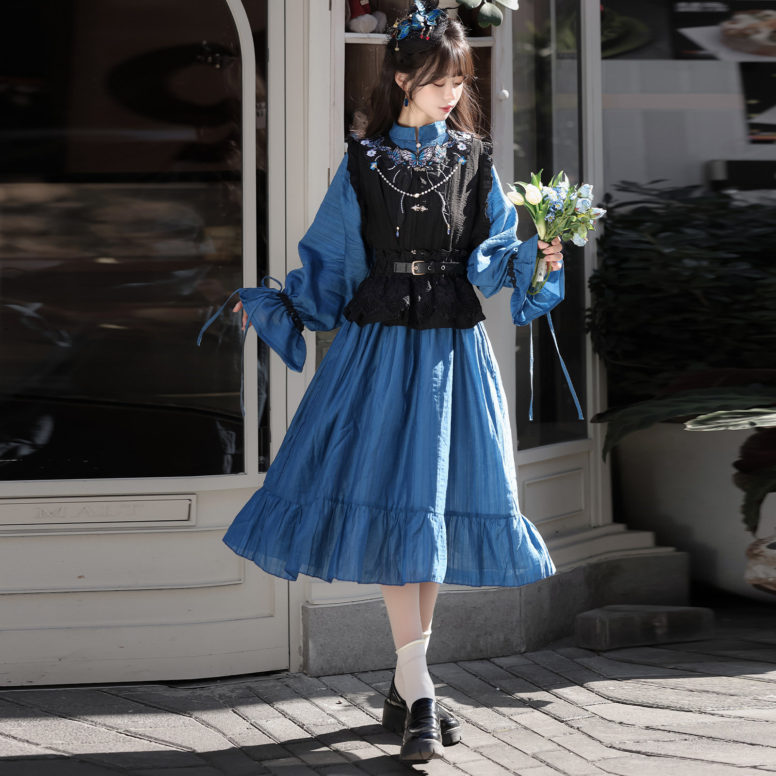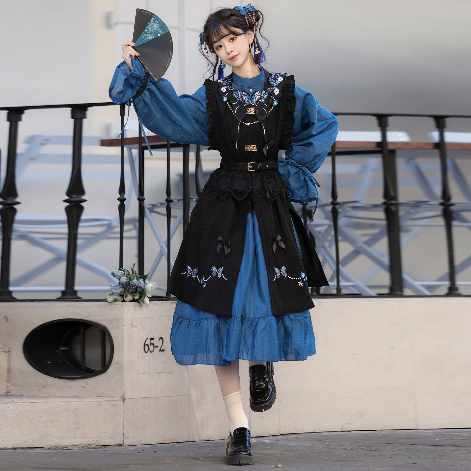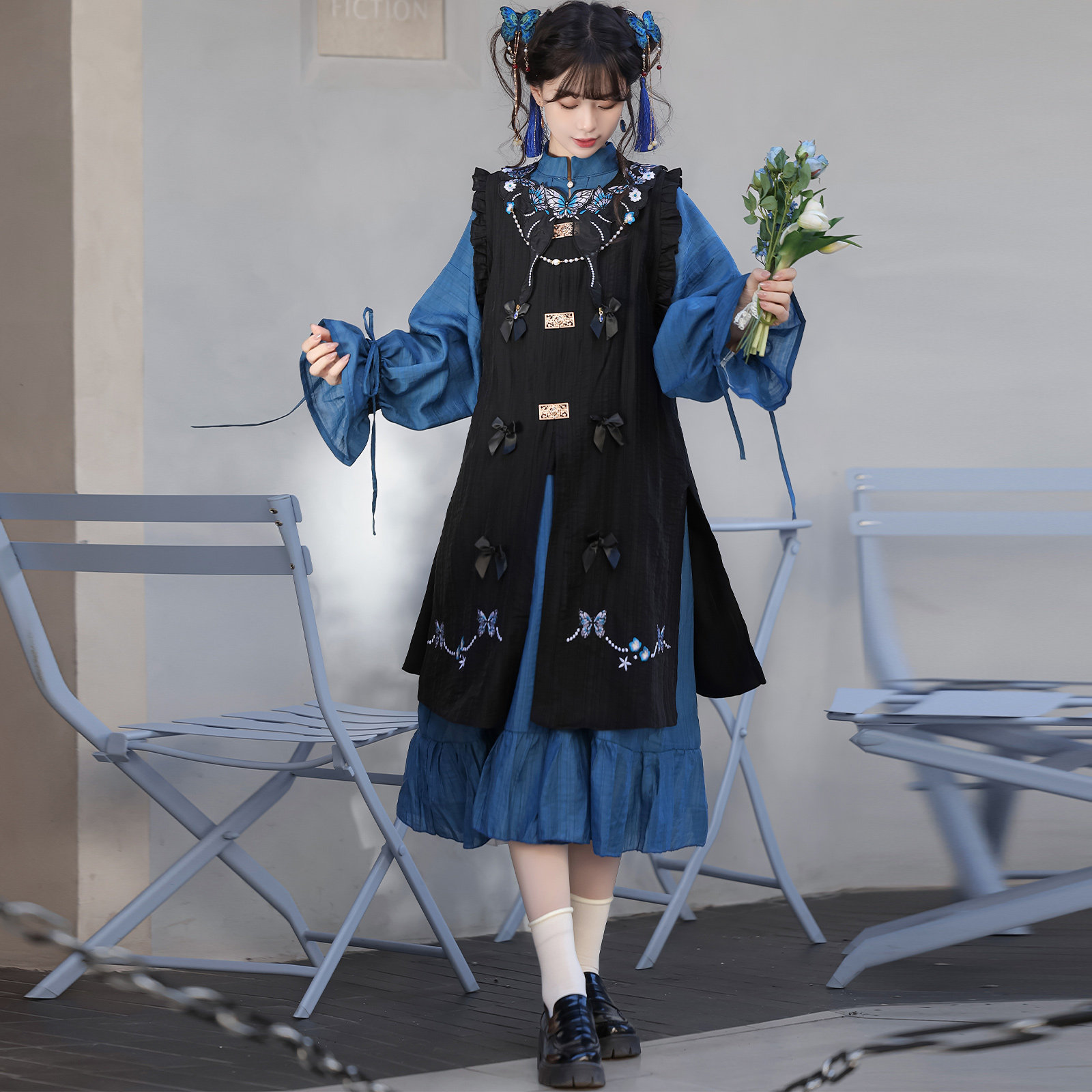 素连衣裙新中式 国风汉元 绣花比甲日常春夏 梦蝶 秀巅原创汉服女