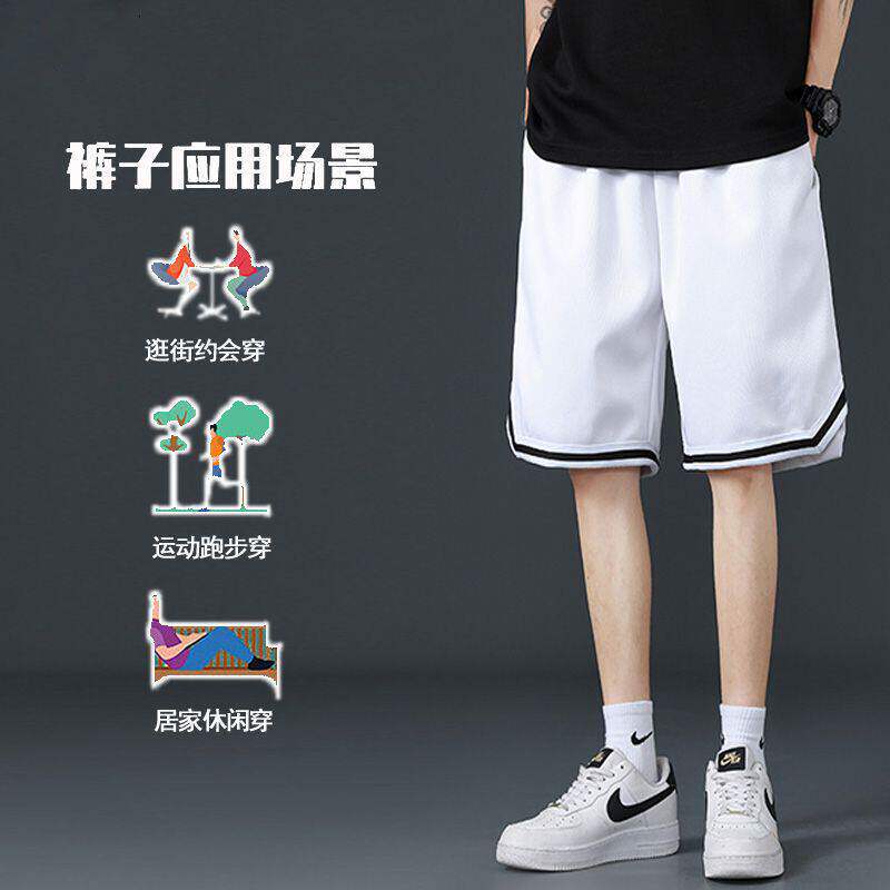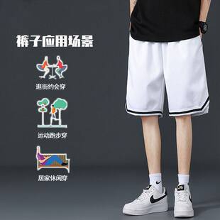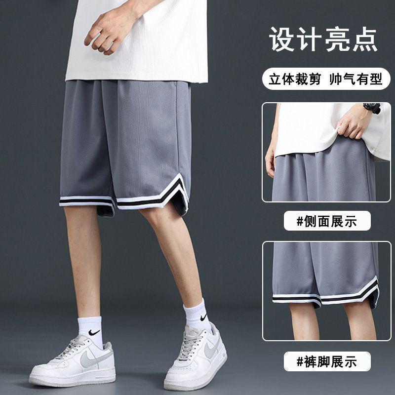 子男五分黑色休闲中裤 夏季 男外穿速干宽松篮球运动裤 冰丝短裤 薄款