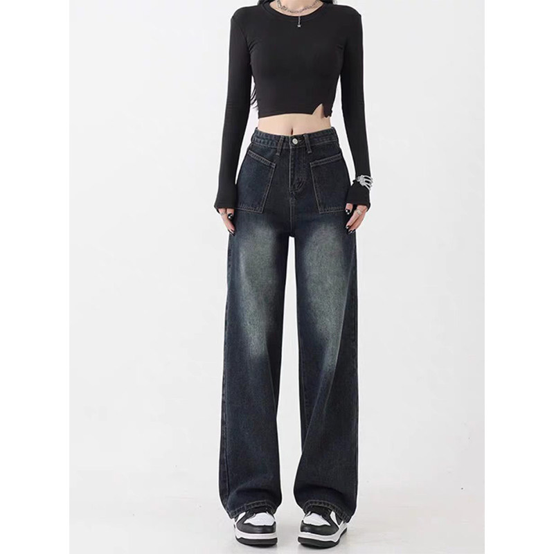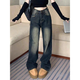 潮流直筒拖地裤 复古高腰直筒牛仔裤 宽松显瘦时尚 爆款 女2026春季