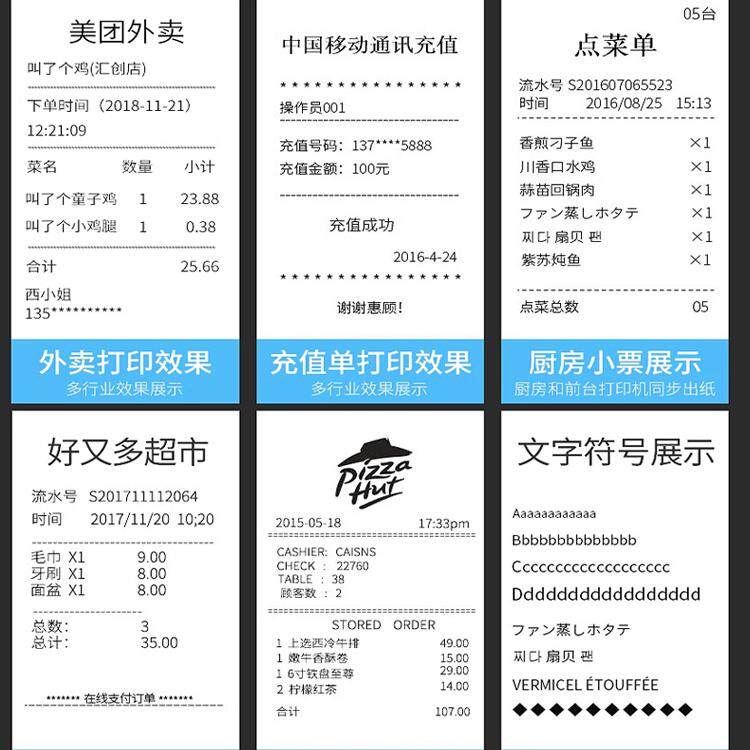 80mm小票打印机 WiFi前台餐饮后厨房出单打印机云热敏网口网线票据便利店美团收银外卖自动切纸接单蓝牙