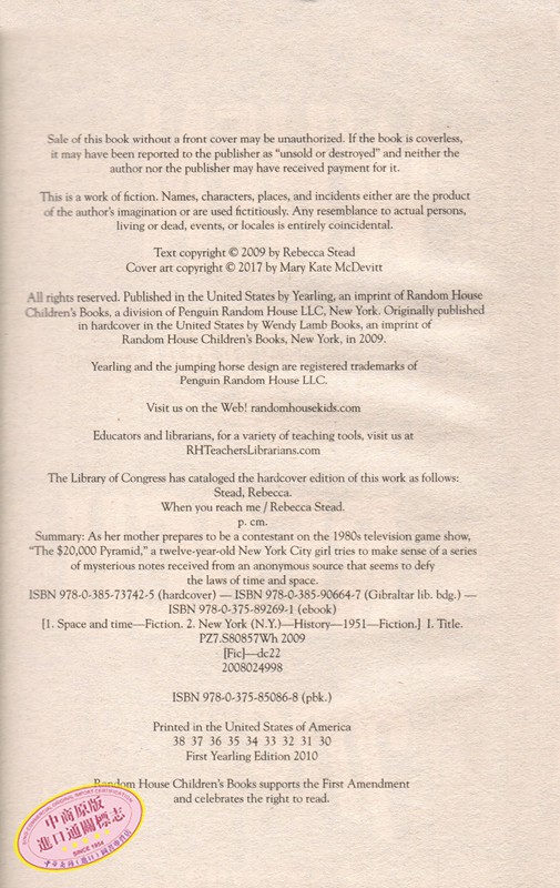 2010年纽伯瑞金奖 When Stead丽贝卡斯戴德 美国畅销儿童文学作家Rebecca 科幻悬疑小说 Reach You 英文原版 当你到达我