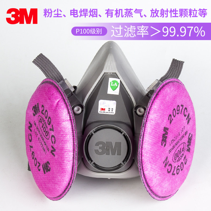 3M6200防护面具颗粒物及有机蒸气装 修异味防尘面罩搭配2097过滤棉