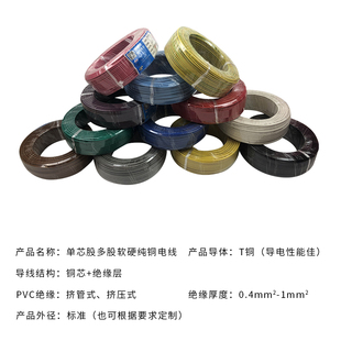 0.5 BVR单芯股多股软硬纯铜电线 0.75 1.0 2.5平方 国标RV 1.5