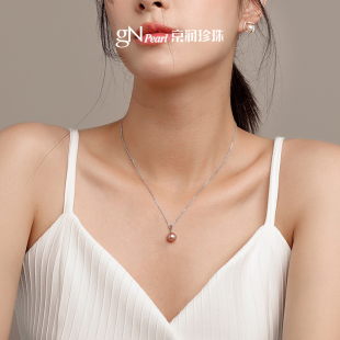 京润珍珠 兰馨淡水珍珠吊坠正圆强光单颗大珍珠吊坠彩色气质项链D