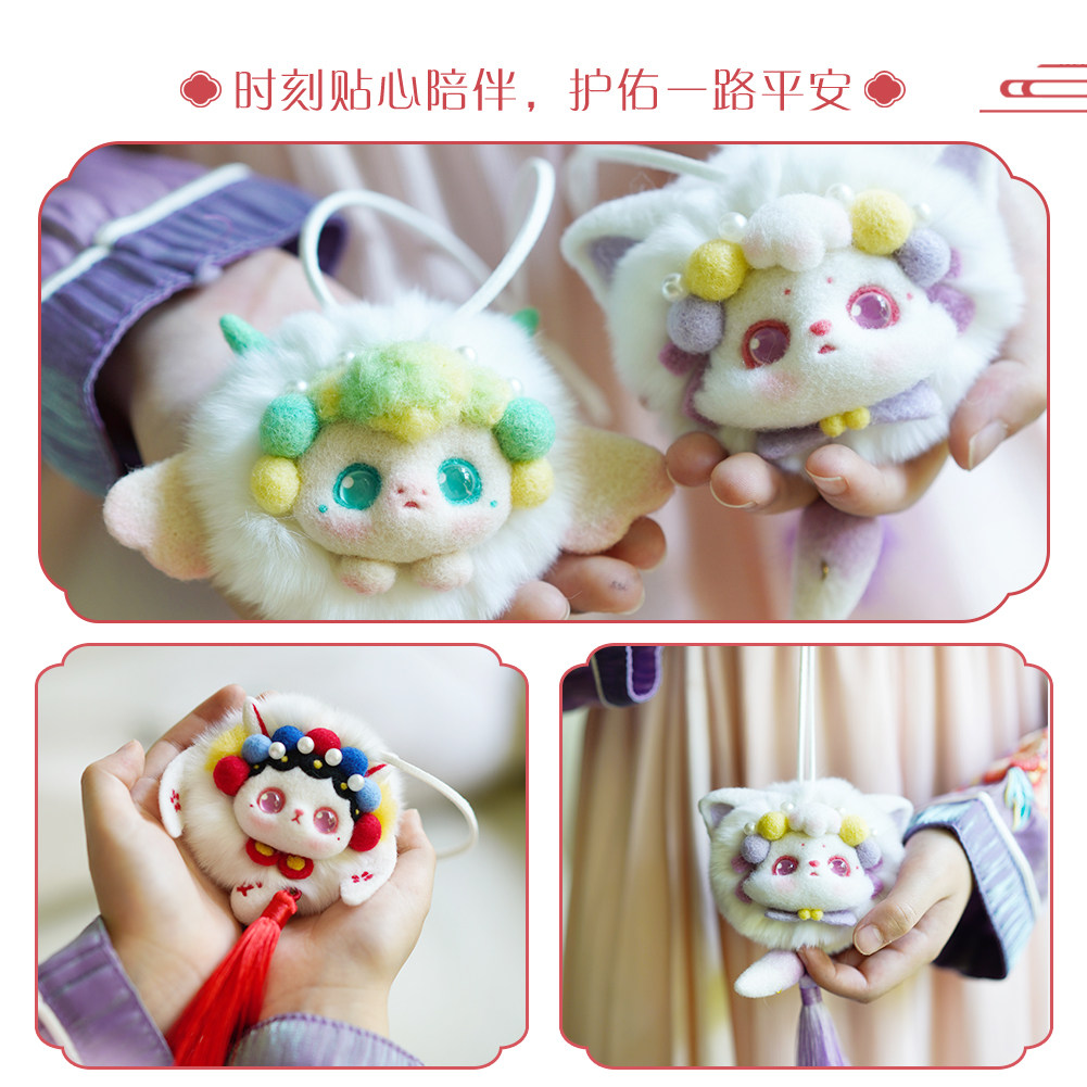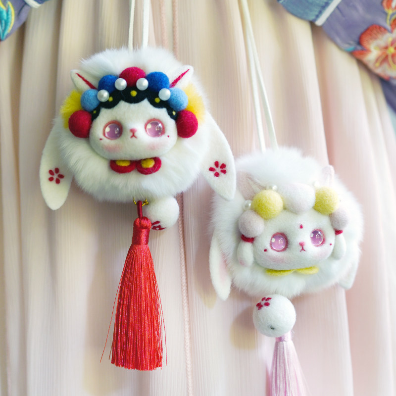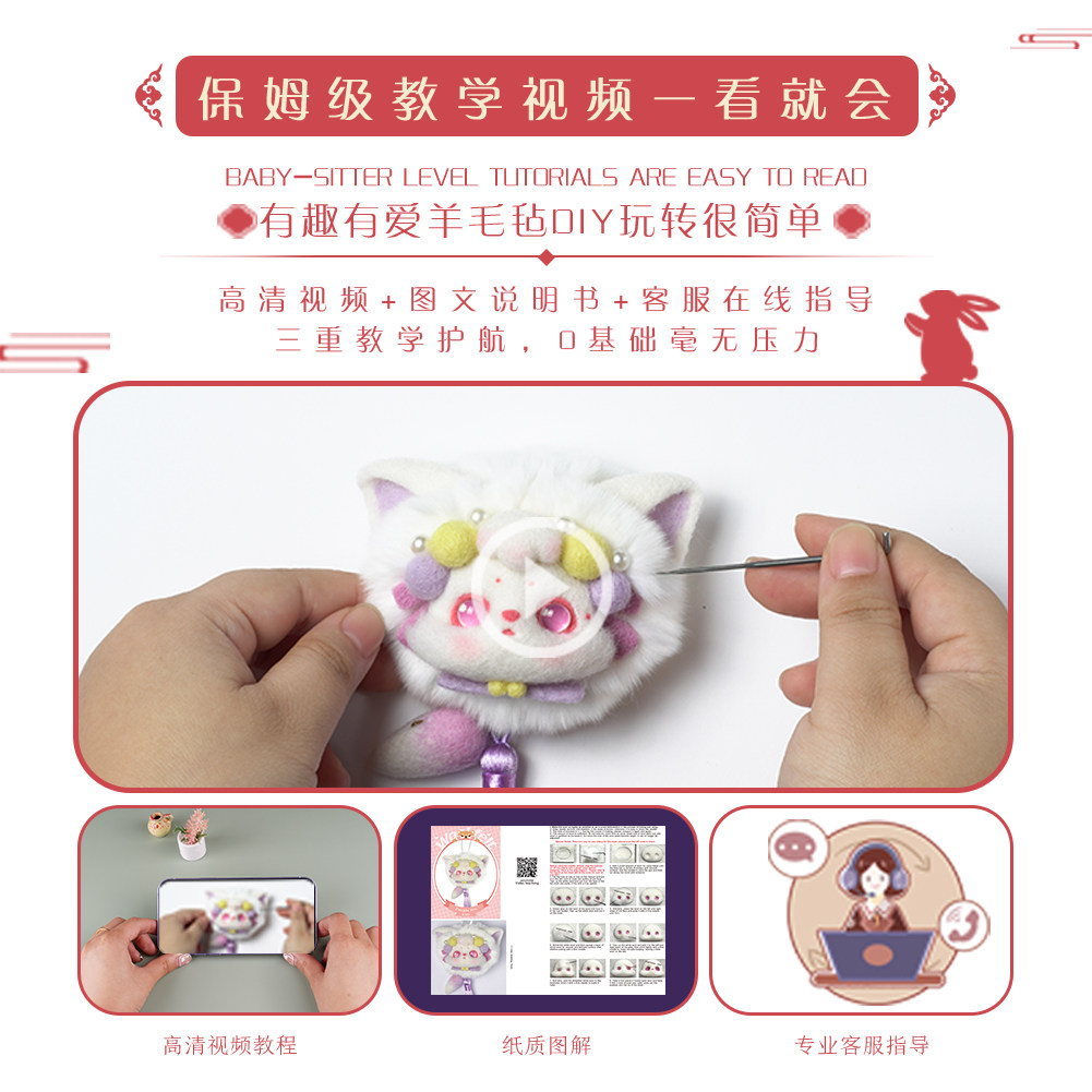diy自制福安兔兔萌兽啵啵小挂件玩偶手工材料包紫狐灵儿 粉色毛球
