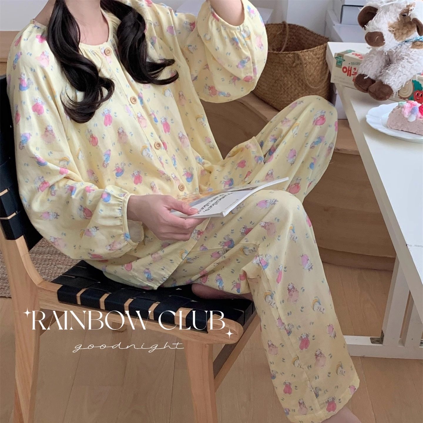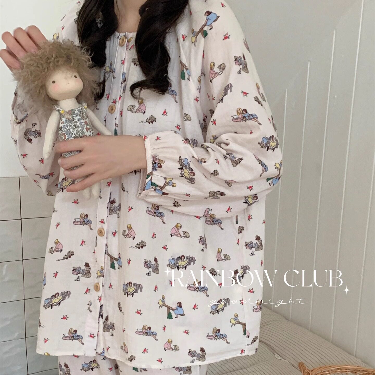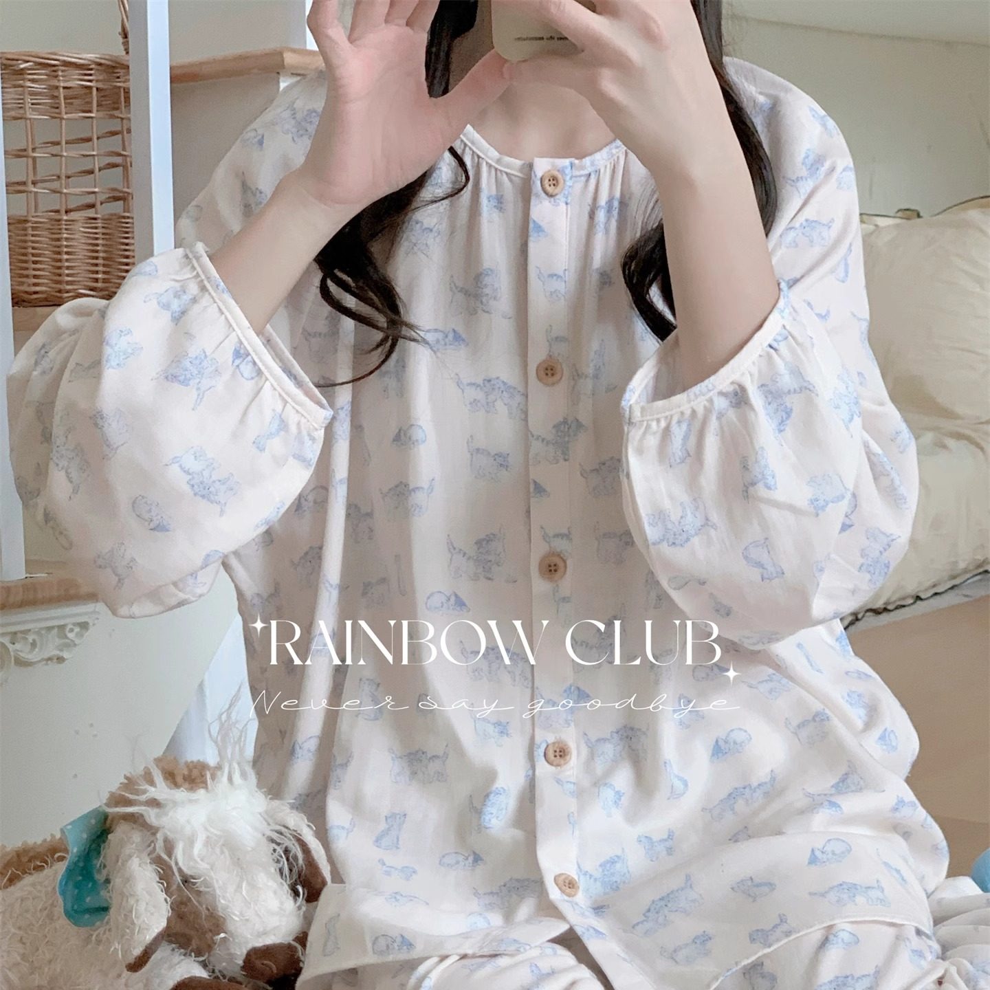 长裤 韩系亲肤细棉纱圆领开衫 家居服女 四季 16色全棉双层纱布睡衣