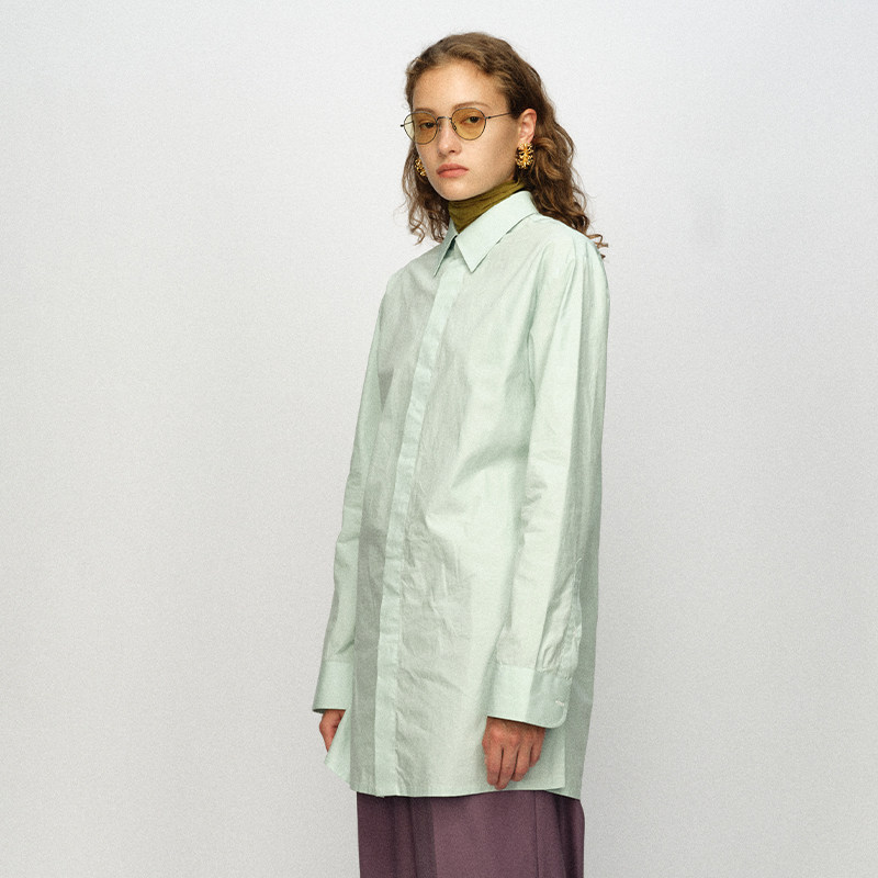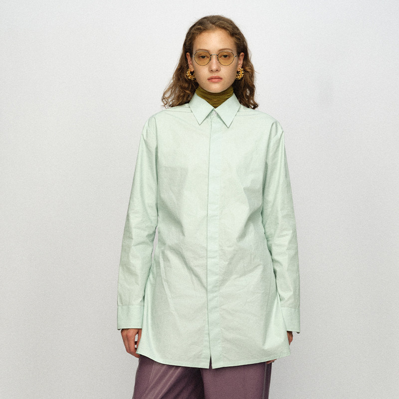 设计师官方店23AW秋冬淡蓝衬衫 WEI JACQUES 上衣 不皱纯棉面料