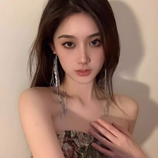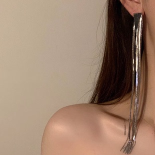 欧美夸张气质长款 高级辣妹显瘦大气几何耳钉耳坠 流苏耳环小众个性