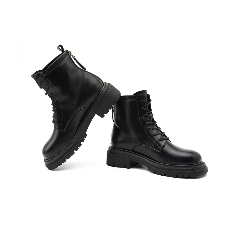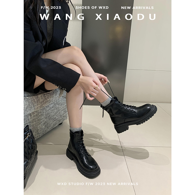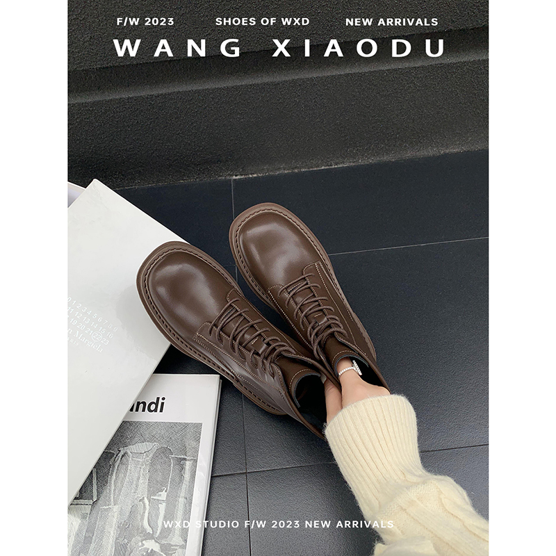 内增高马丁靴女靴子2025新款 秋冬真皮厚底大头短靴复古高帮大黄靴