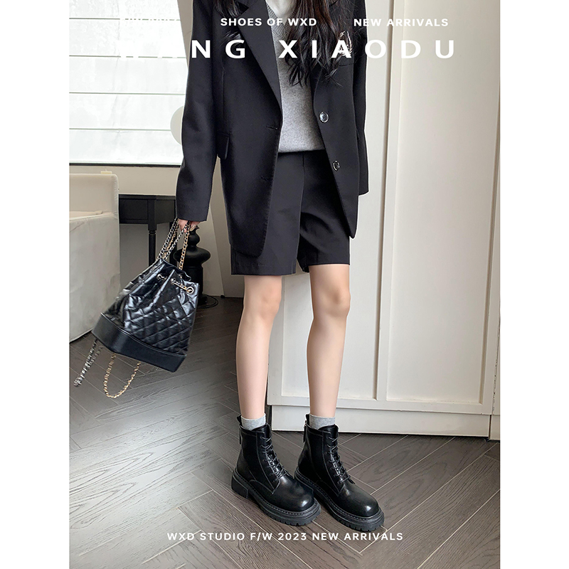 靴子 中帮休闲皮靴加绒英伦风通勤工装 马登黑色马丁靴男款 秋冬季