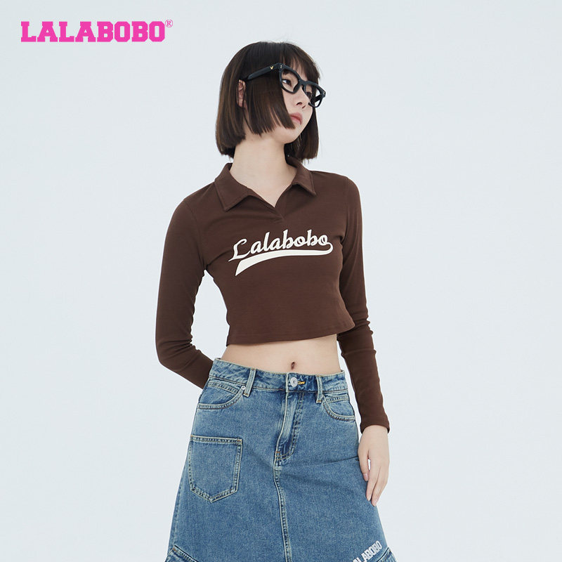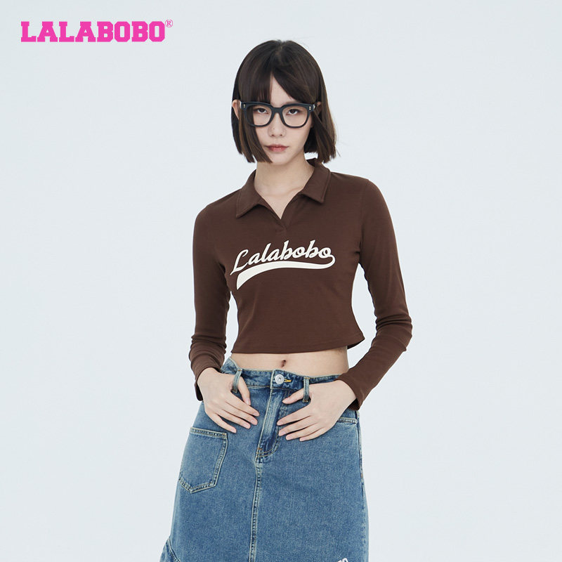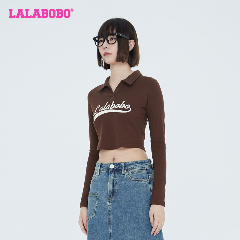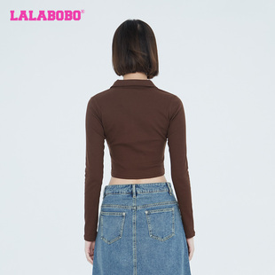 打底衫 LALABOBO早秋新品 运动翻领长袖 T恤女 WSDT45 LBCC 美拉德