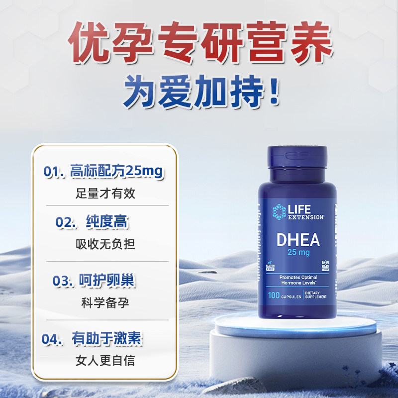 沿寿LIFE卵巢DHEA女性备孕精准保养卵子质量卵泡发育25mg进口胶囊