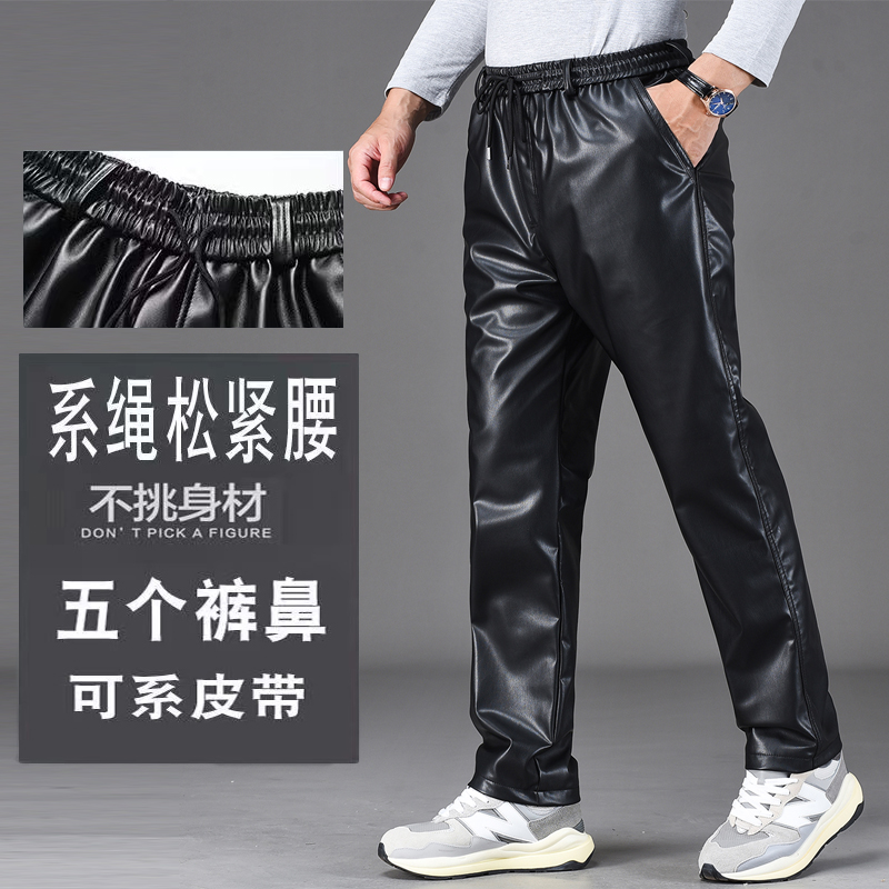 骑行机修工作裤 宽松男士 男加绒加厚防水挡风秋冬季 松紧腰抽绳皮裤