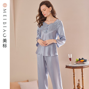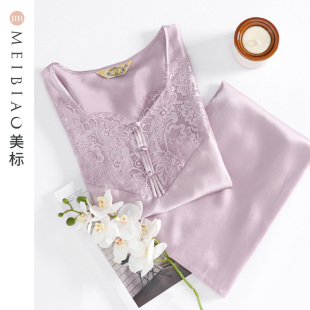 维多利亚真丝睡衣女小众轻奢设计感粉色条纹桑蚕丝家居服两件套装